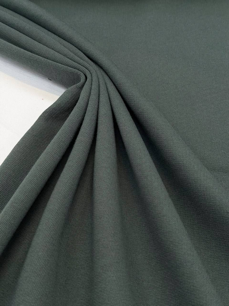 Meterware D##r Designerstoff – Deadstock French Terry Basisfarbe Pantone Darkest Spruce | Stoffbreite 190 cm