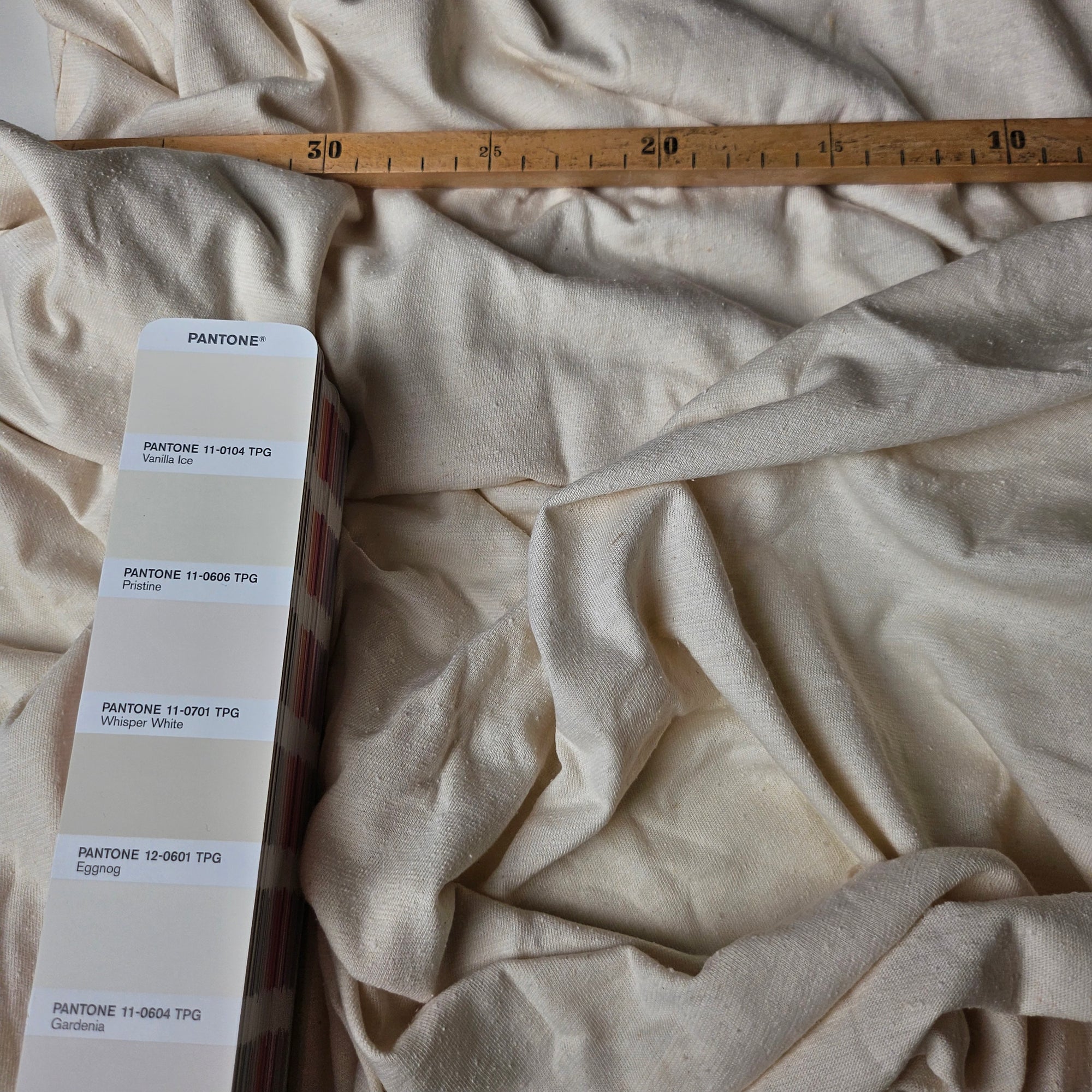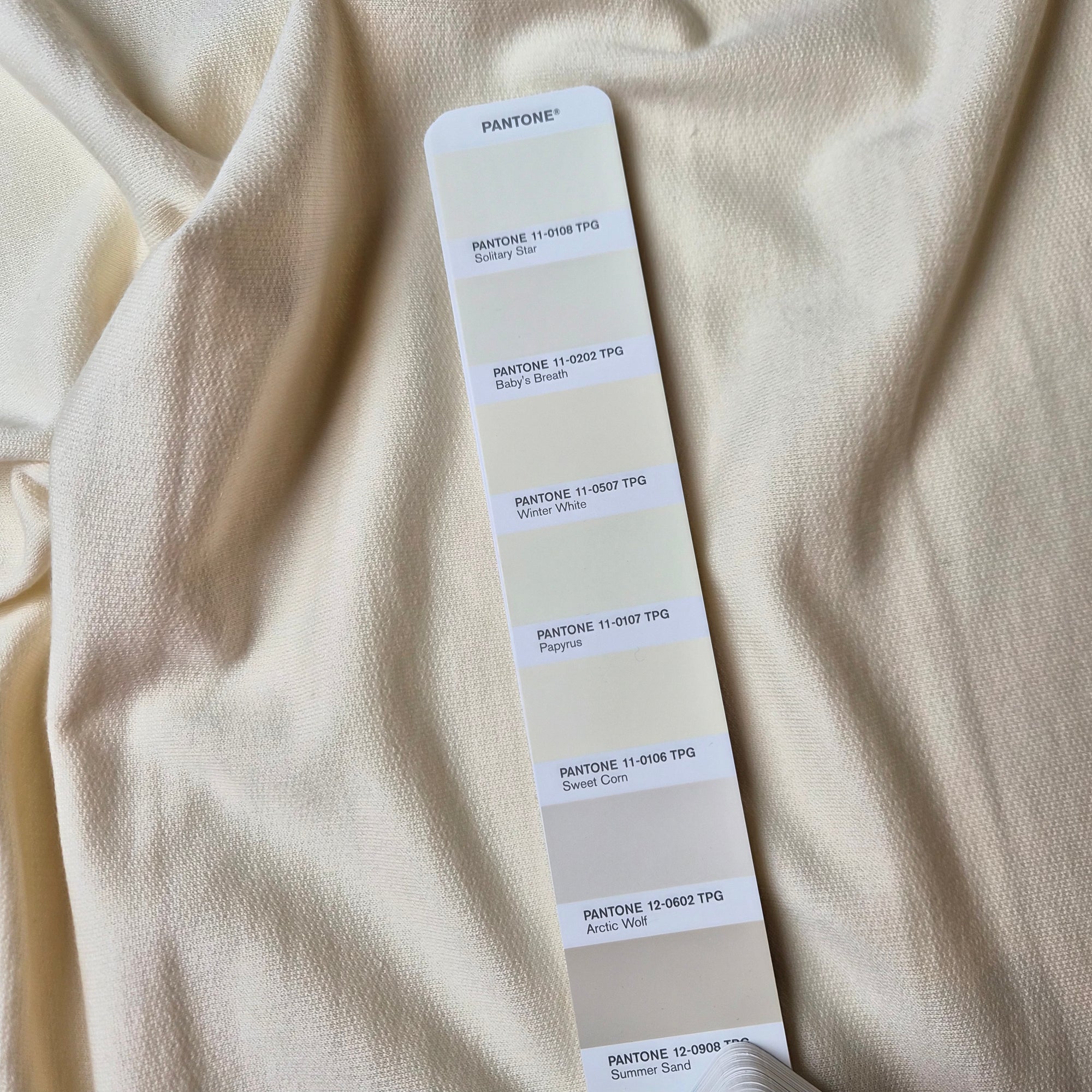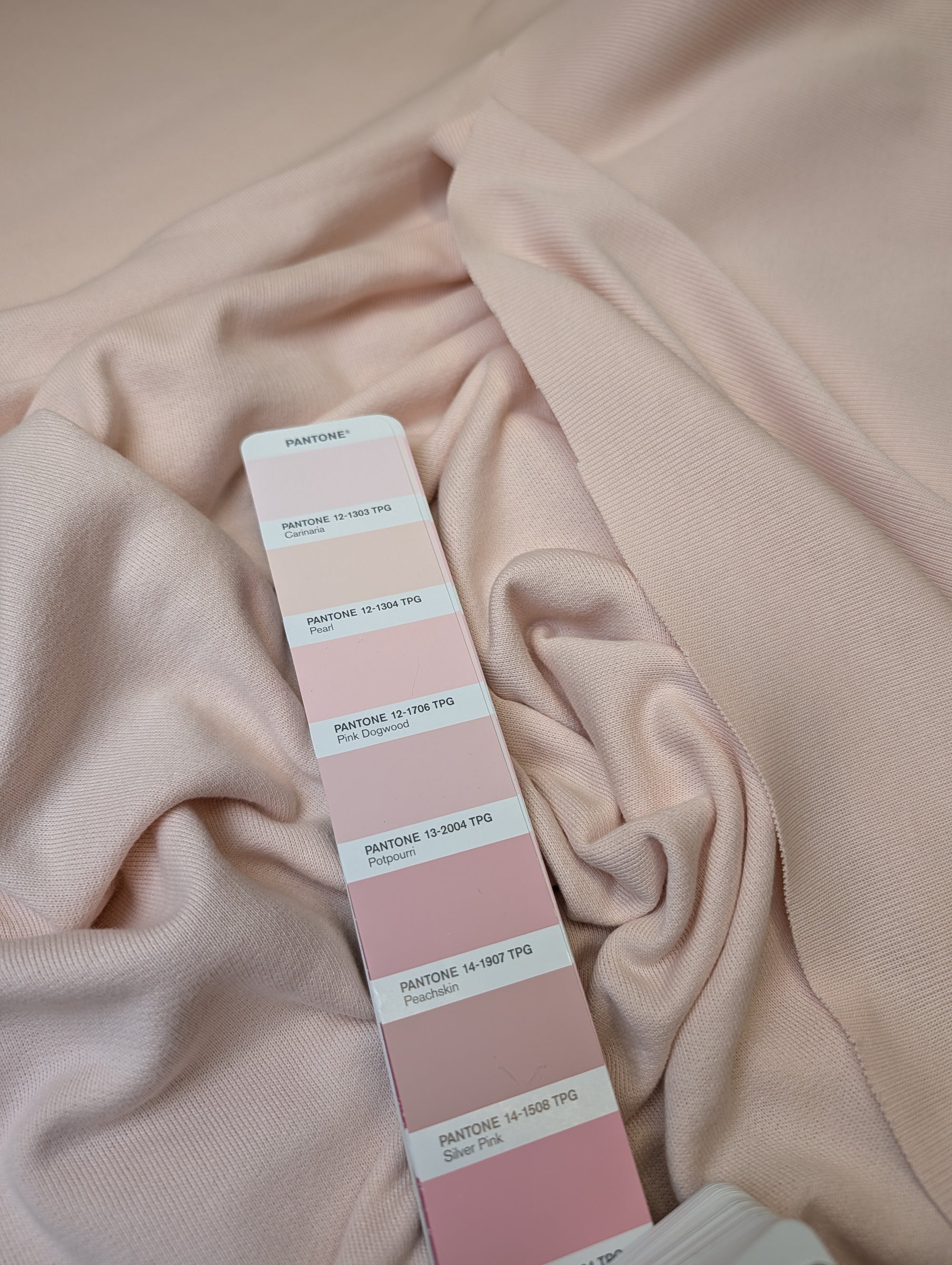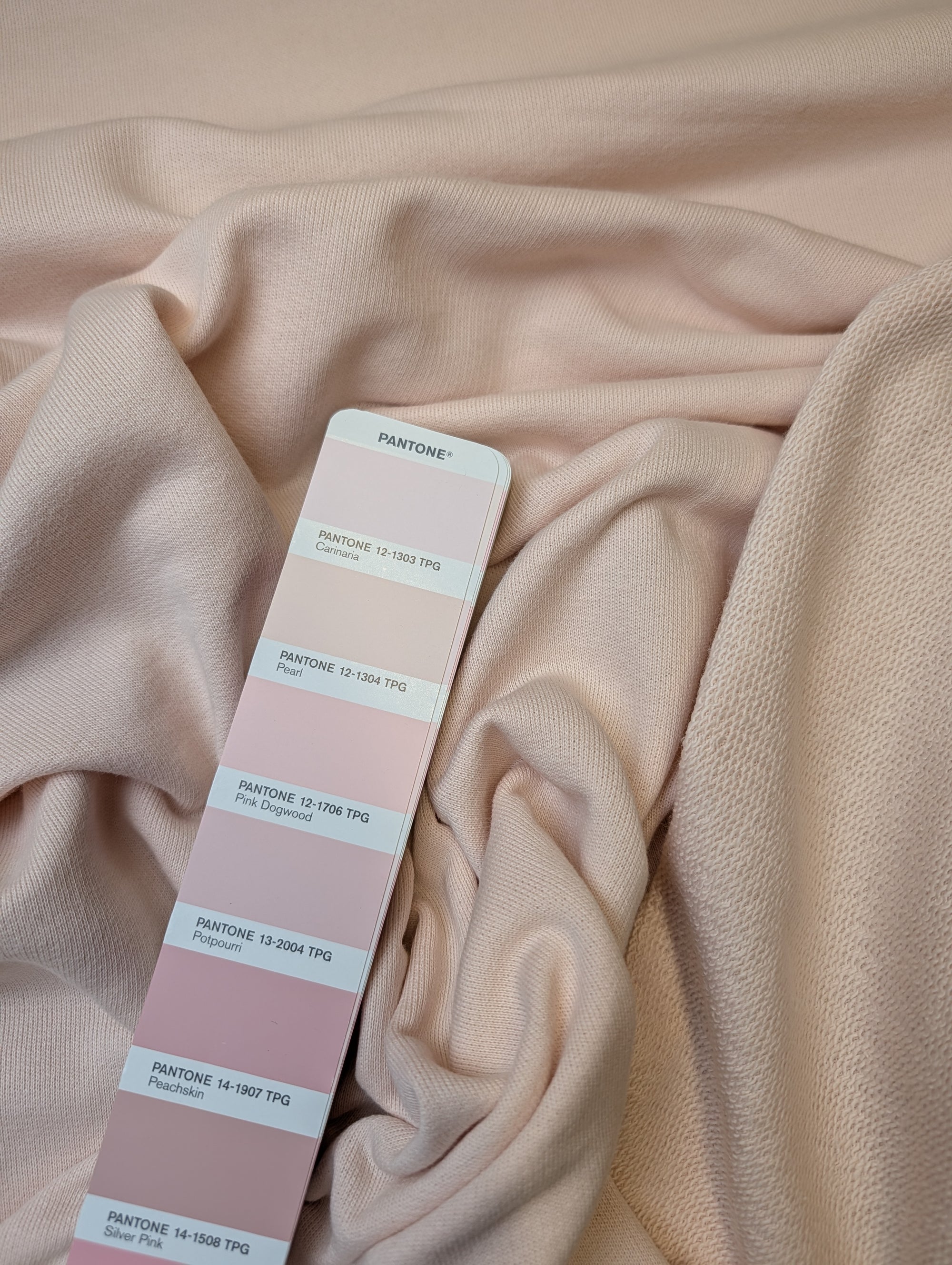Meterware D##r Designerstoff – Deadstock French Terry Basisfarbe Pantone Pearl | Stoffbreite 190 cm