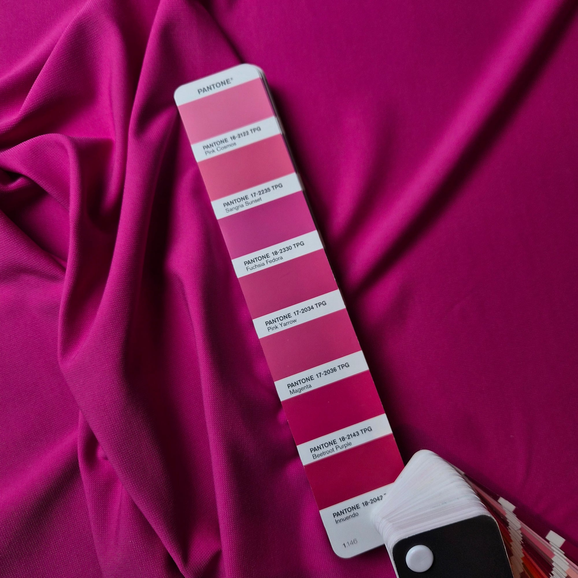 M#####l K##s Designerstoff – Deadstock Viskosejersey mit Stretch Basisfarbe Fuchsia Fedora | Stoffbreite 135 cm | M10X3X15