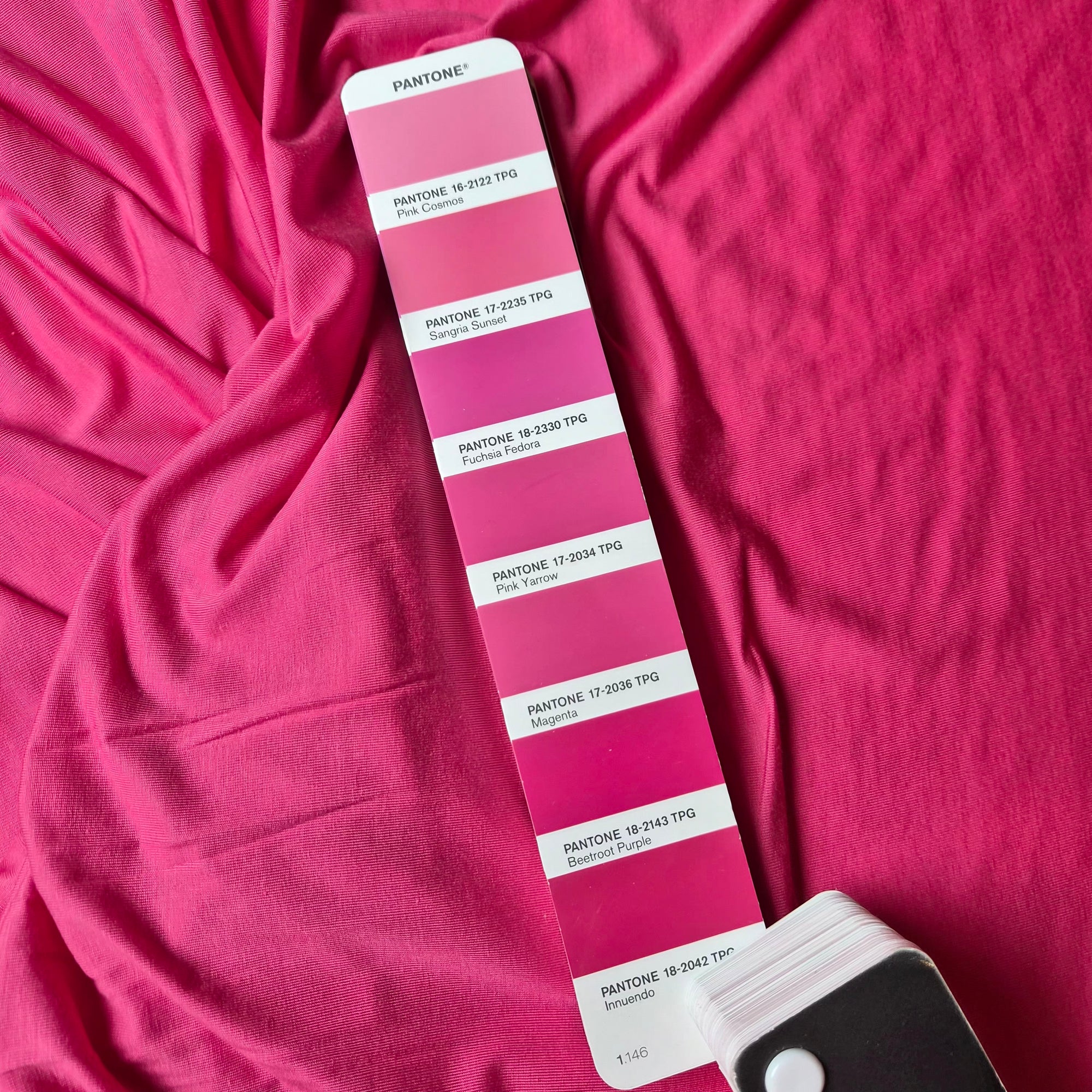 Meterware V#######o Designerstoff – Deadstock Jersey Basisfarbe Pink Cosmos | 160 cm | M1X5X10