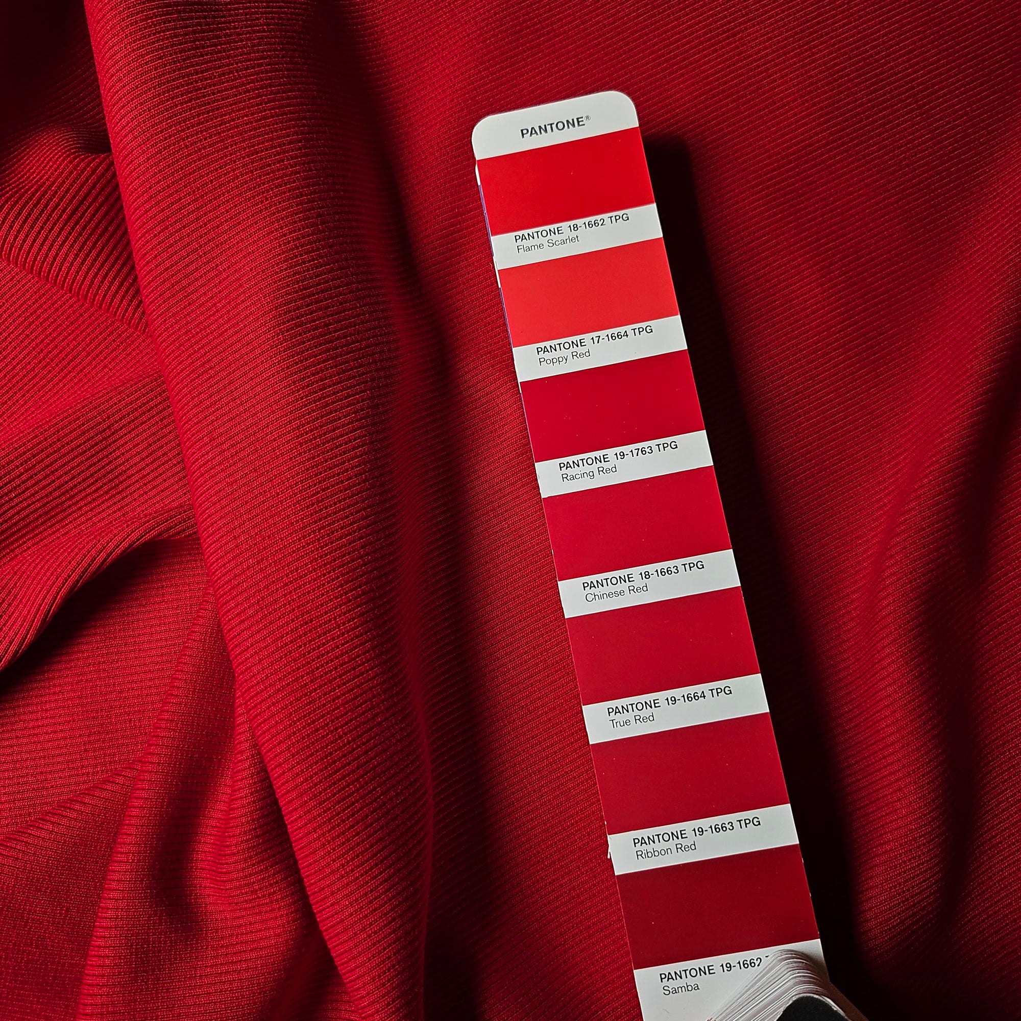 Designerstoff – Deadstock Ribstrick Baumwolle Basisfarbe Chinese Red | Stoffbreite 100 cm | M10X1X37