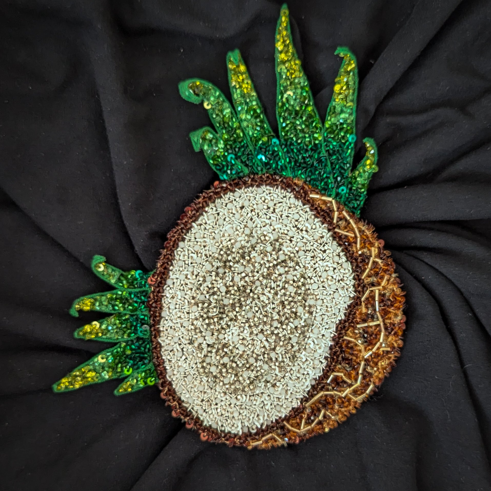 L7X3X012 Patch Perlen und Pailetten D&G Kokosnuss Blätter rechts 14 cm breit 18 cm hoch