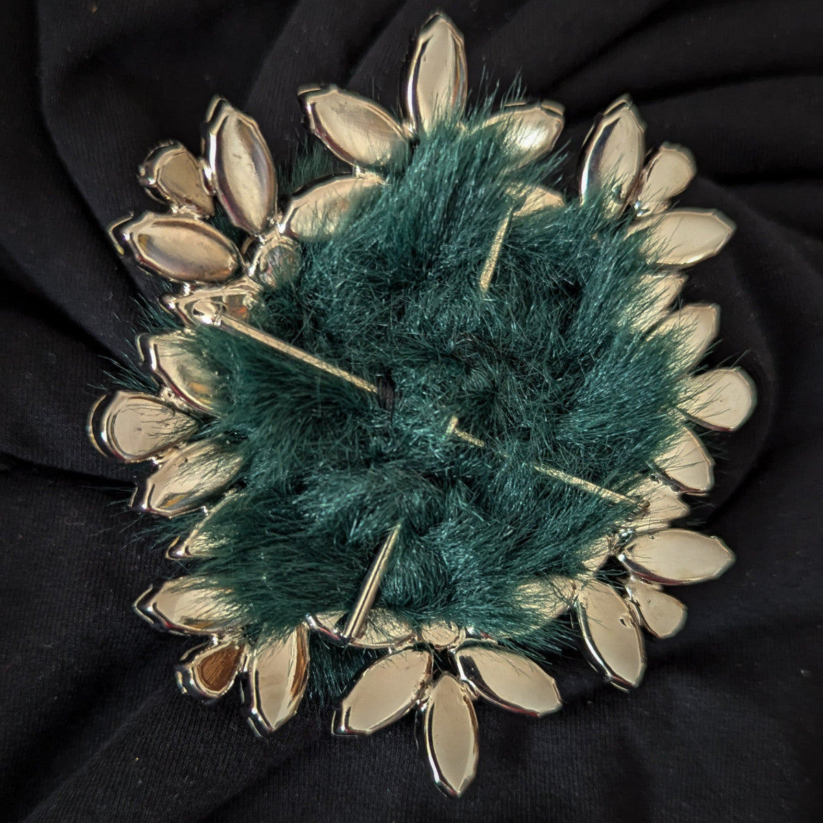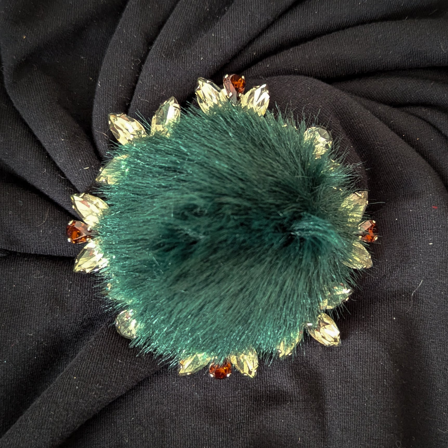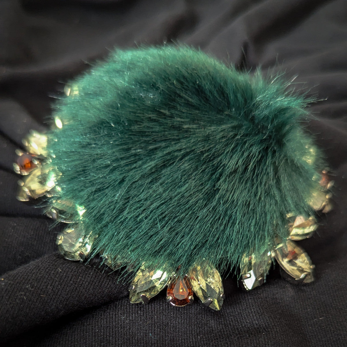 Zierornament Swarovskisteine und dunkelgrünem Fell DG 9 cm X 9 cm S2X1X004