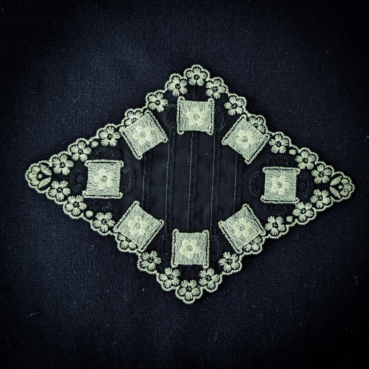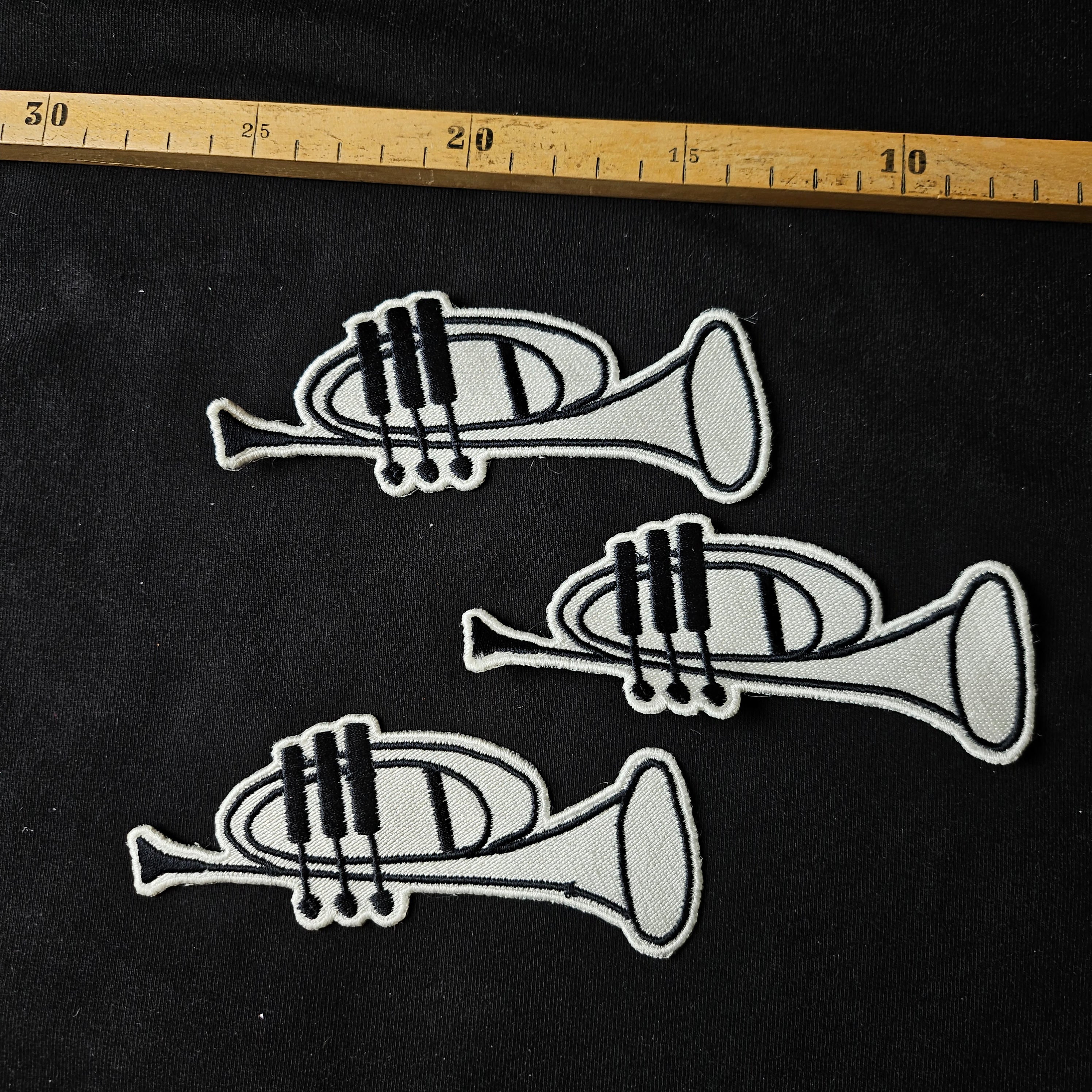 Deadstock Bestickter Patch – Basisfarbe Elfenbein mit schwarzer Trompete, D*G (Einzelstück, 5×13 cm) (S3X2X005)