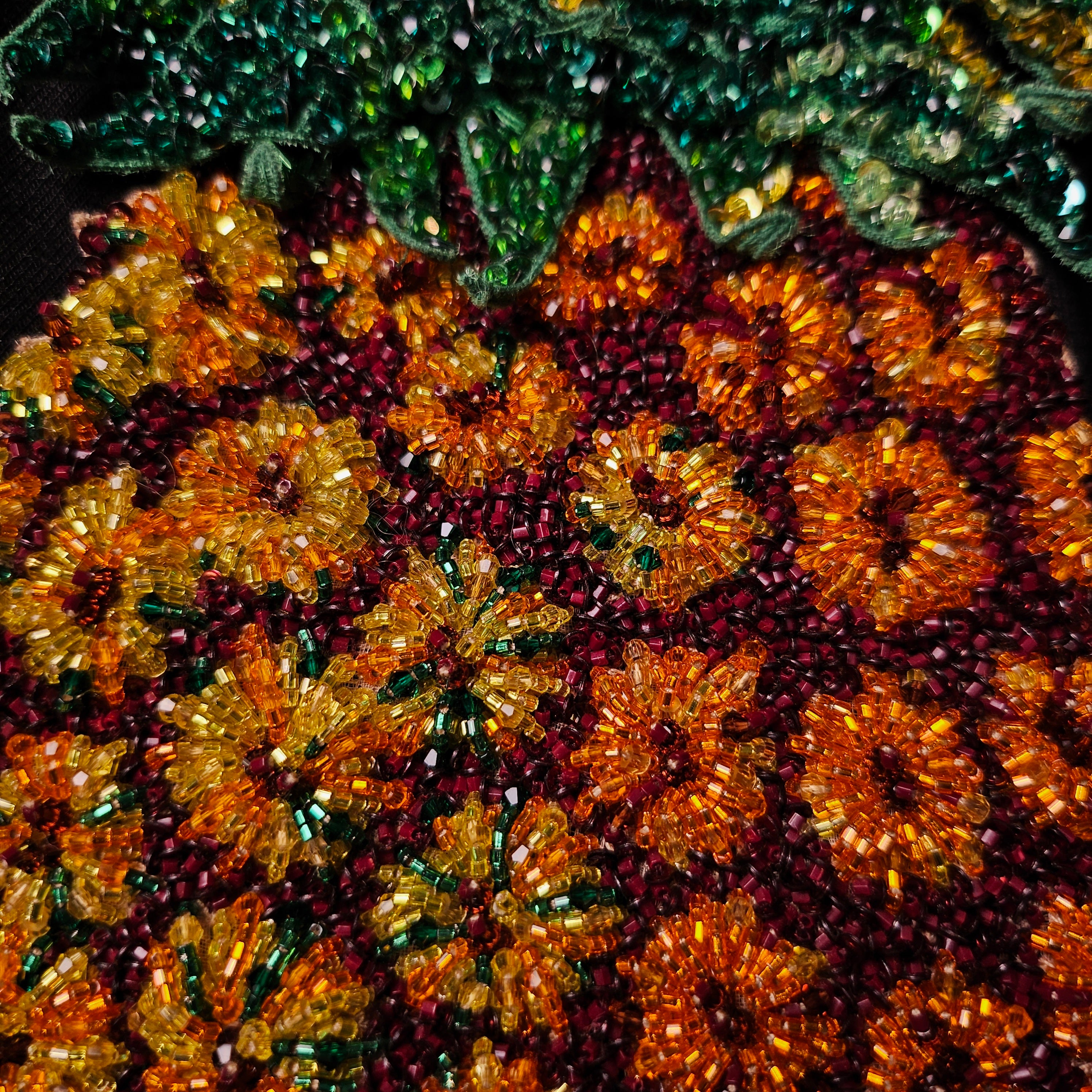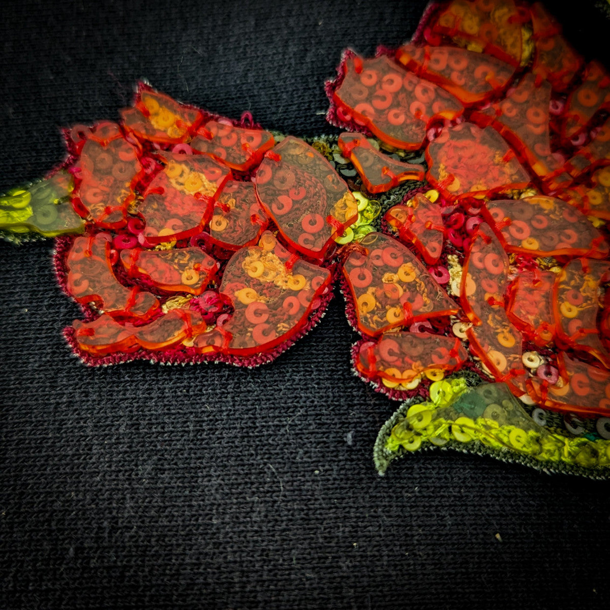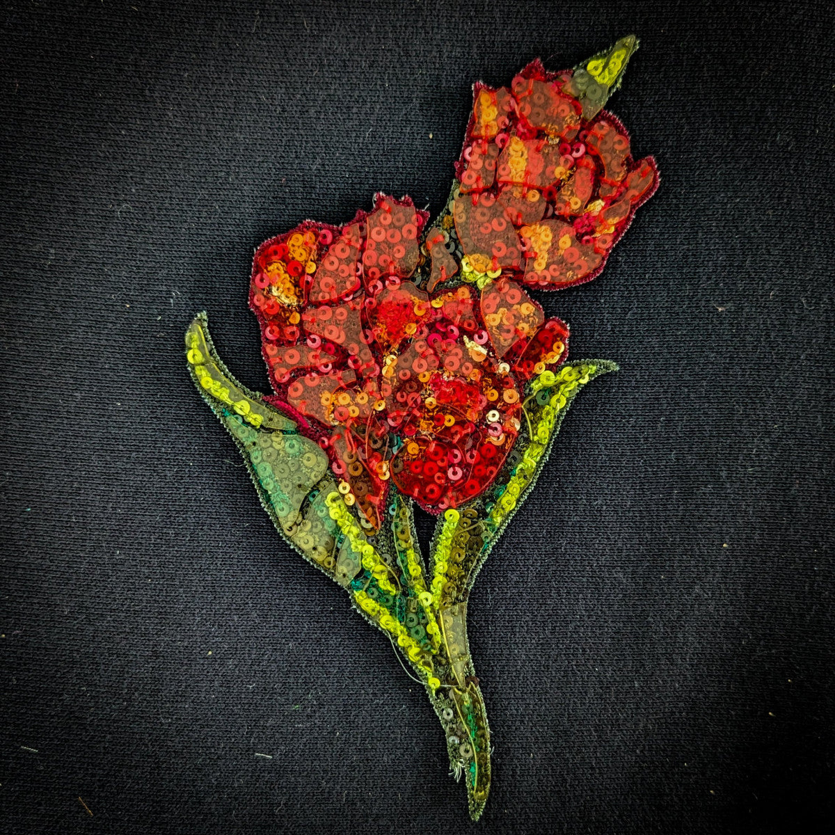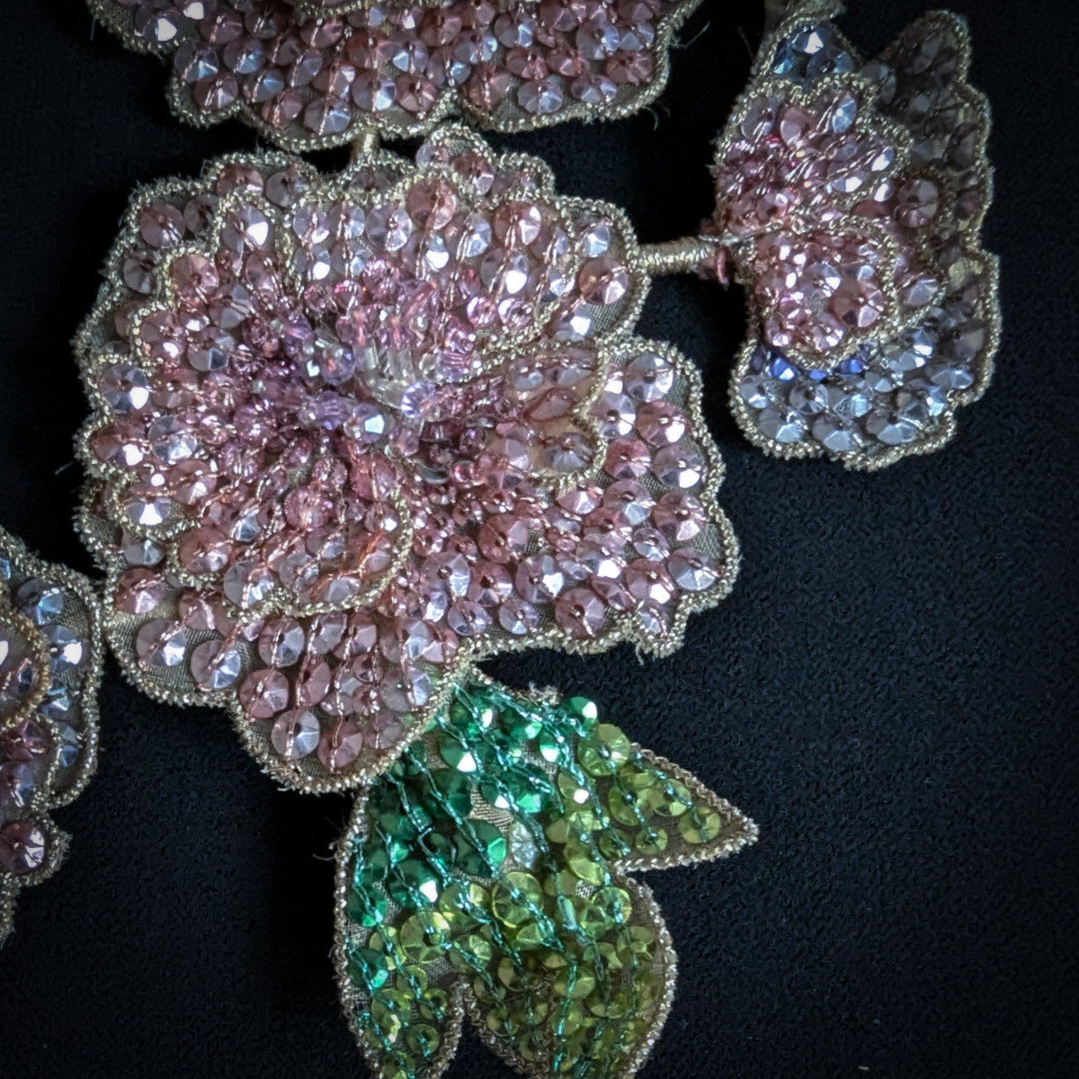 S7X2X010 Aufnäher Blumen gestickt, Perlen 11 cm x 12 cm