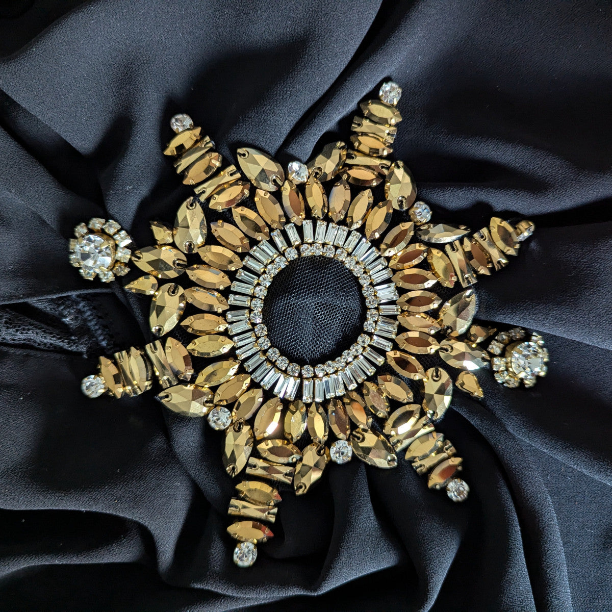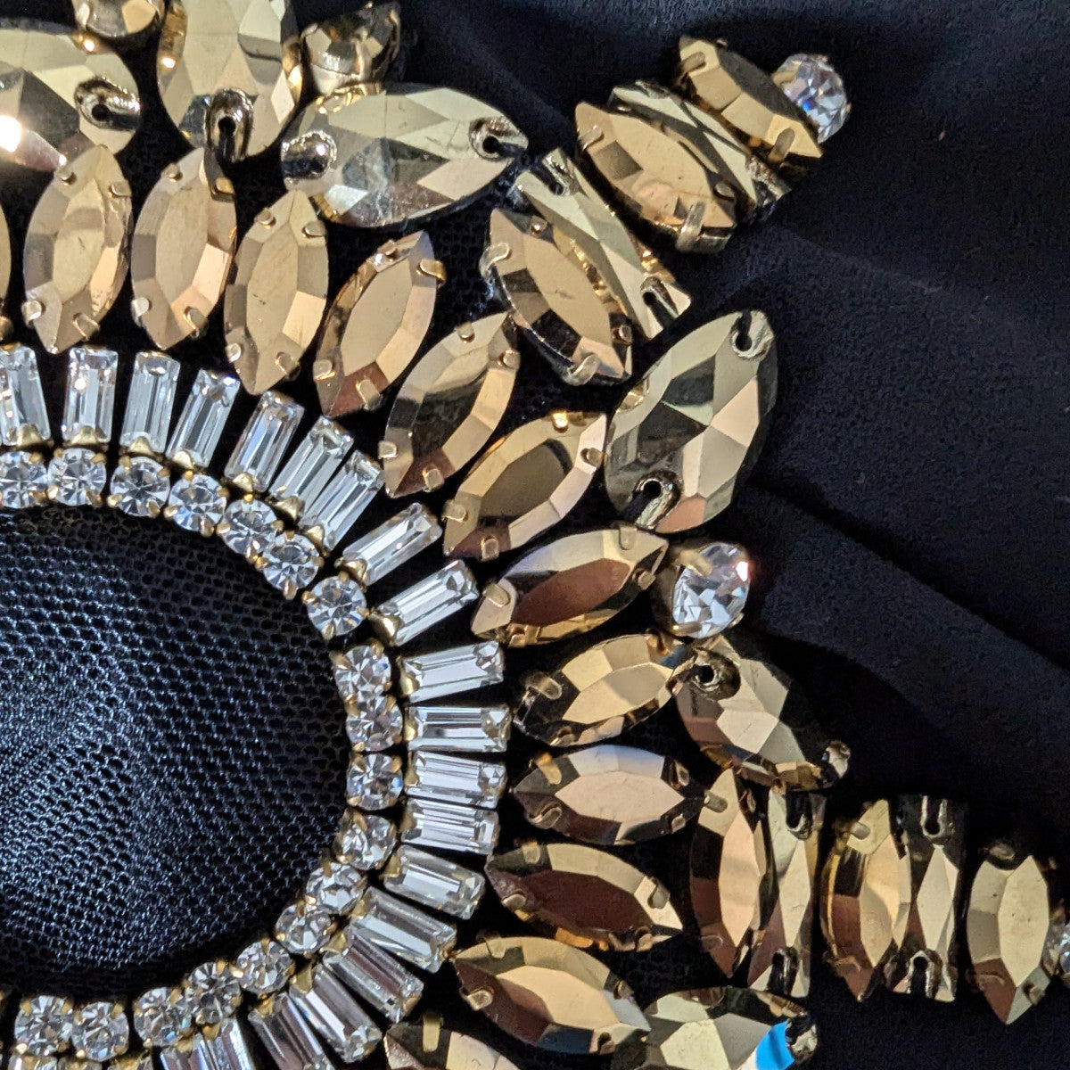 L4X3X012 Schwerer Aufnäher gefasste Edelsteine, Swarovskisteine und Perlen 11 cm x 13 cm