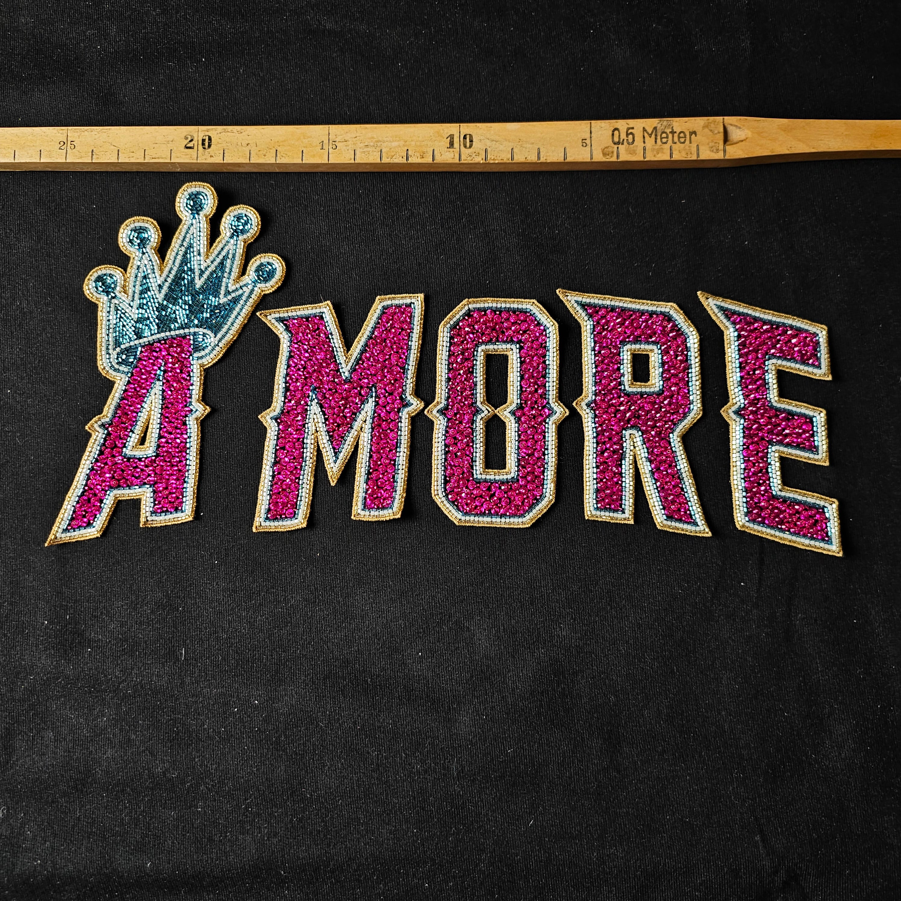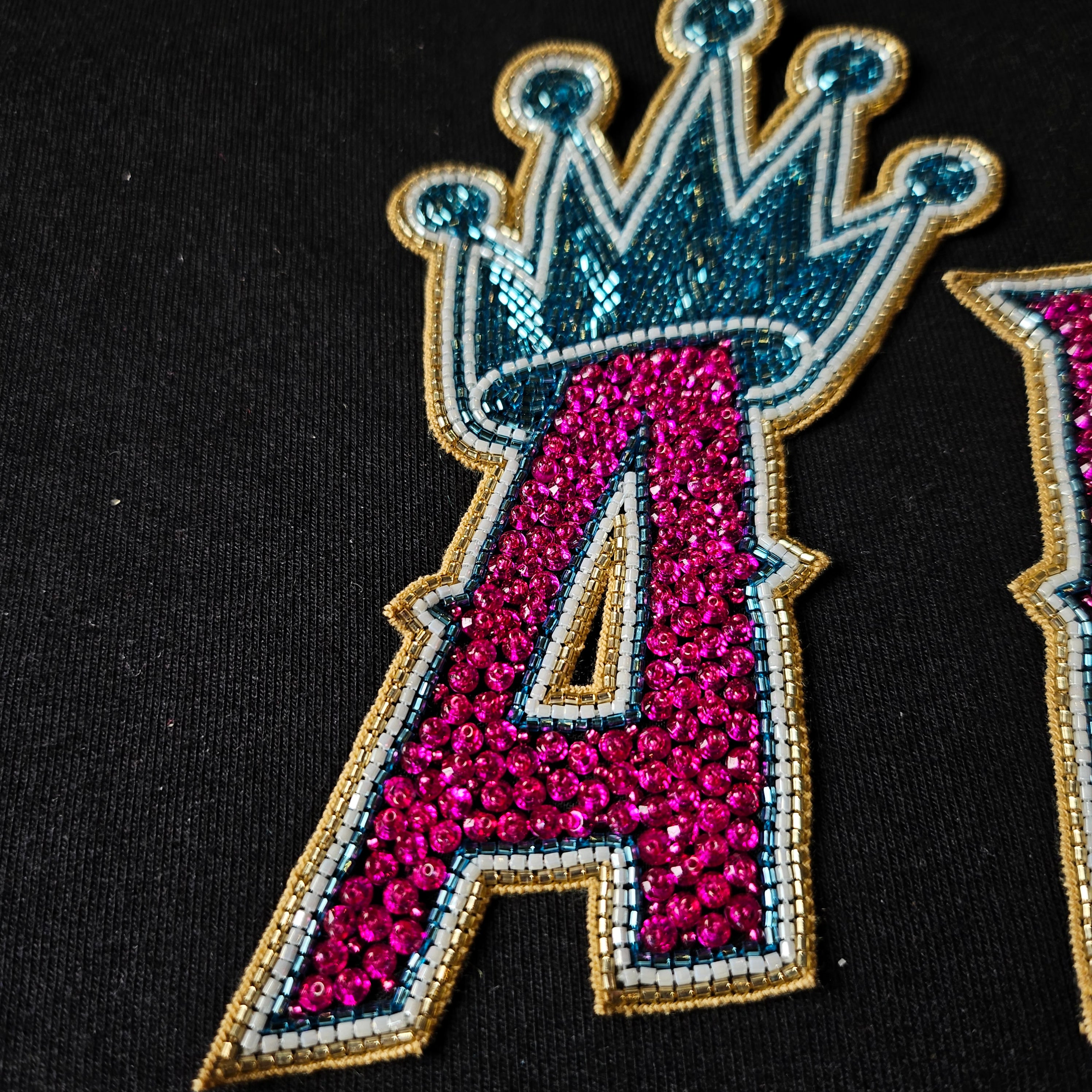 Deadstock Bestickter Aufnäher – Pink Mit Türkisblauer Krone, D*G (Einzelstück, 14 × 28 cm) (S3X1X071)