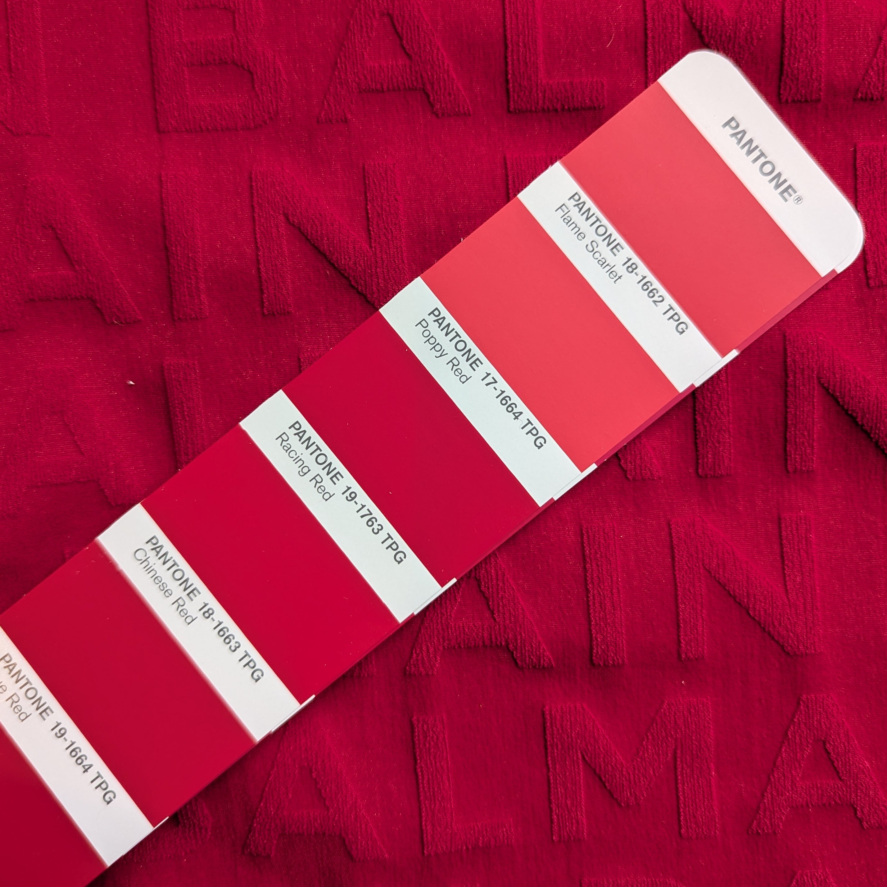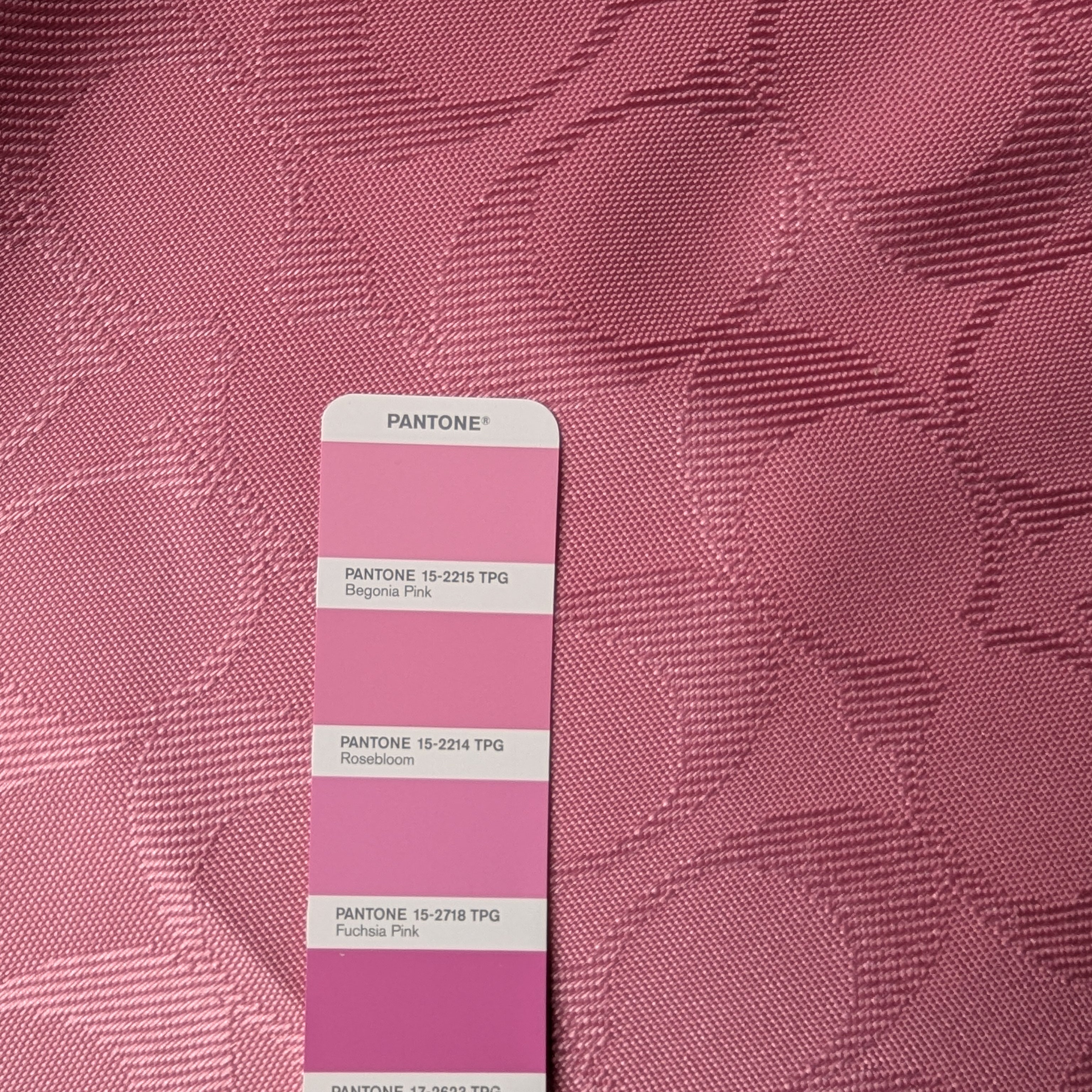 Deadstock Polyesterjacquard – Pantone-Farbton Hot Coral Logoeinwebung, C*ch (Meterware, Stoffbreite 120 cm) (M5X4X16)