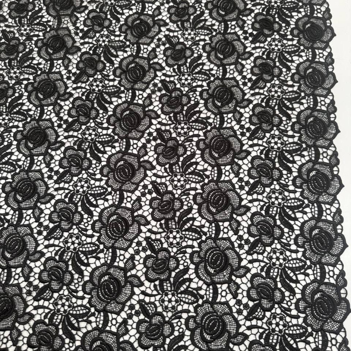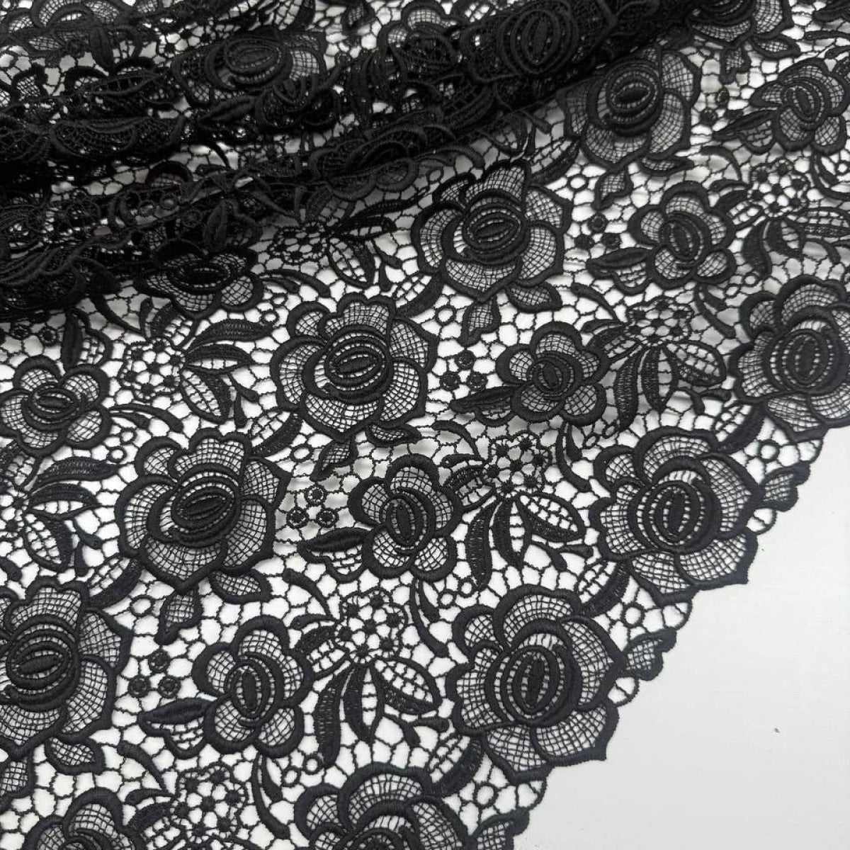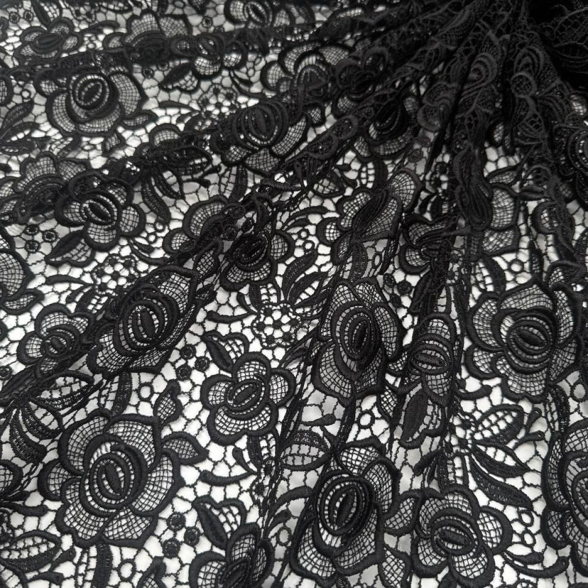 Deadstock Polyamid Macramee Spitze, – Schwarz Rosenmuster (Breite 86 cm) (M2X1X18)