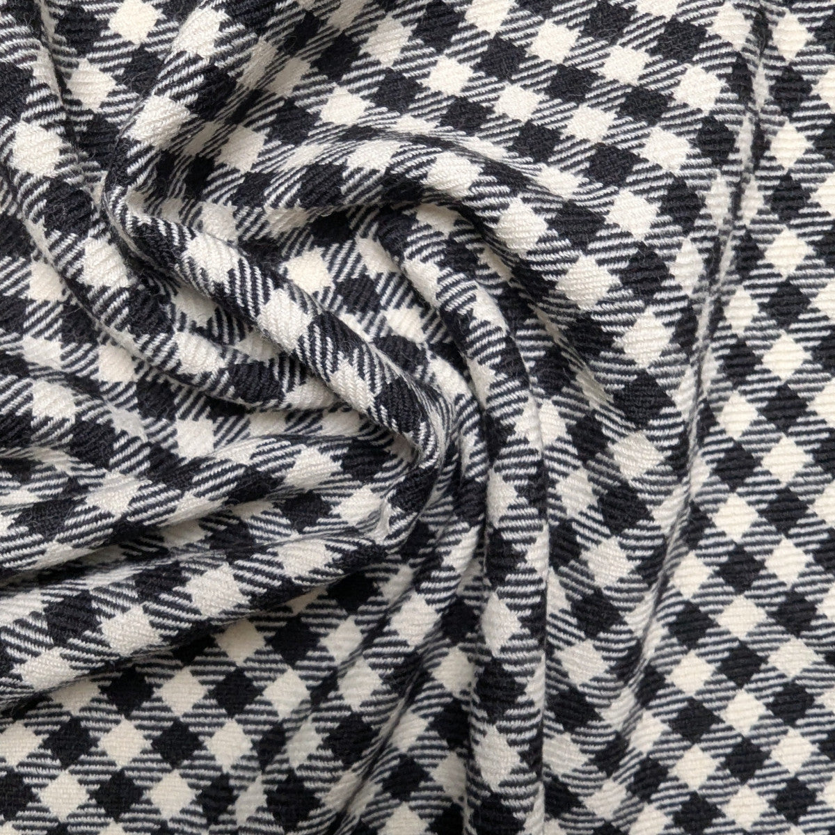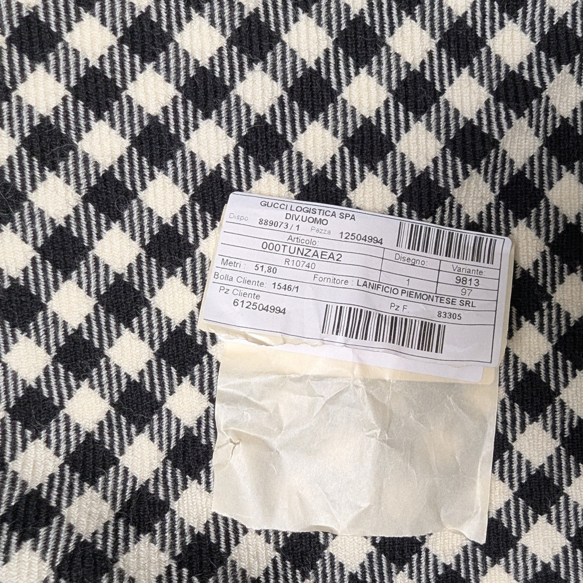 Deadstock Wollwebstoff Meterware - Schwarz-Weiß Kariert, Gcci* ( Stoffbreite 160 cm × 160 cm) (M5X6X6)