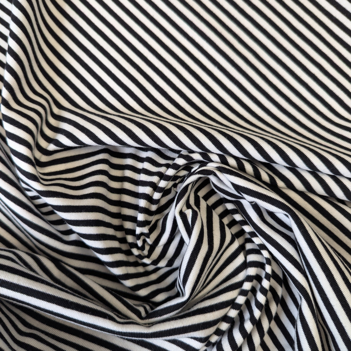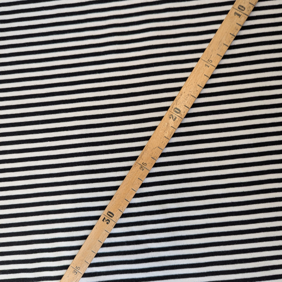 Deadstock Meterware Baumwolljersey, C*line – Basisfarbe Schwarz-Weiß Streifen (Breite 140 cm) (M6X6X4)
