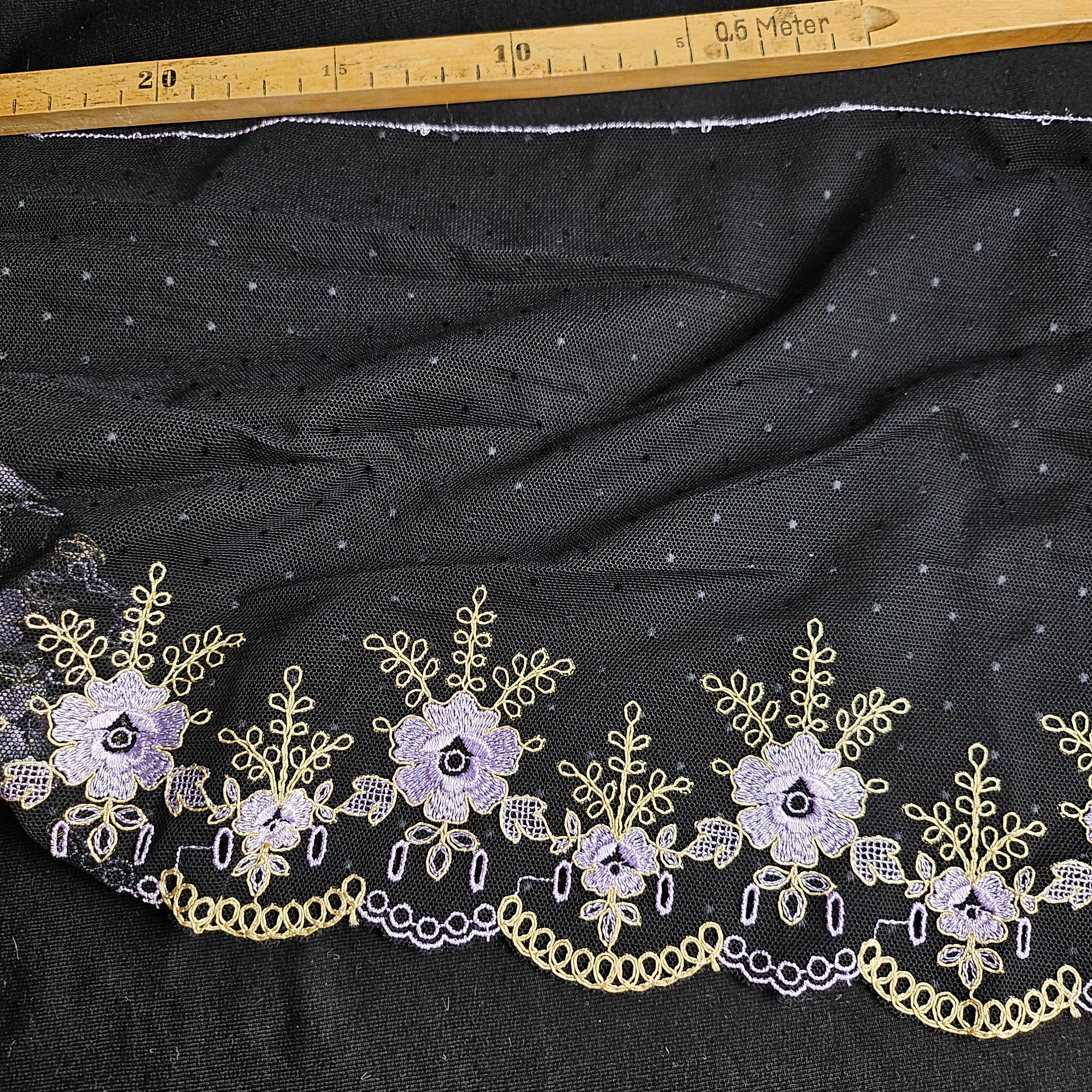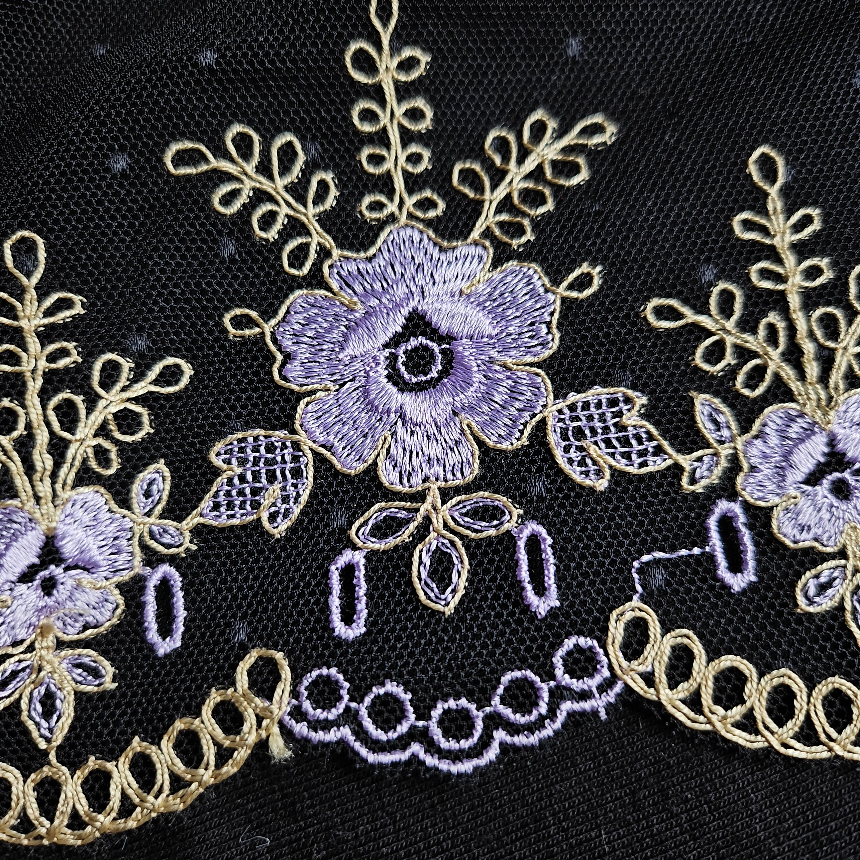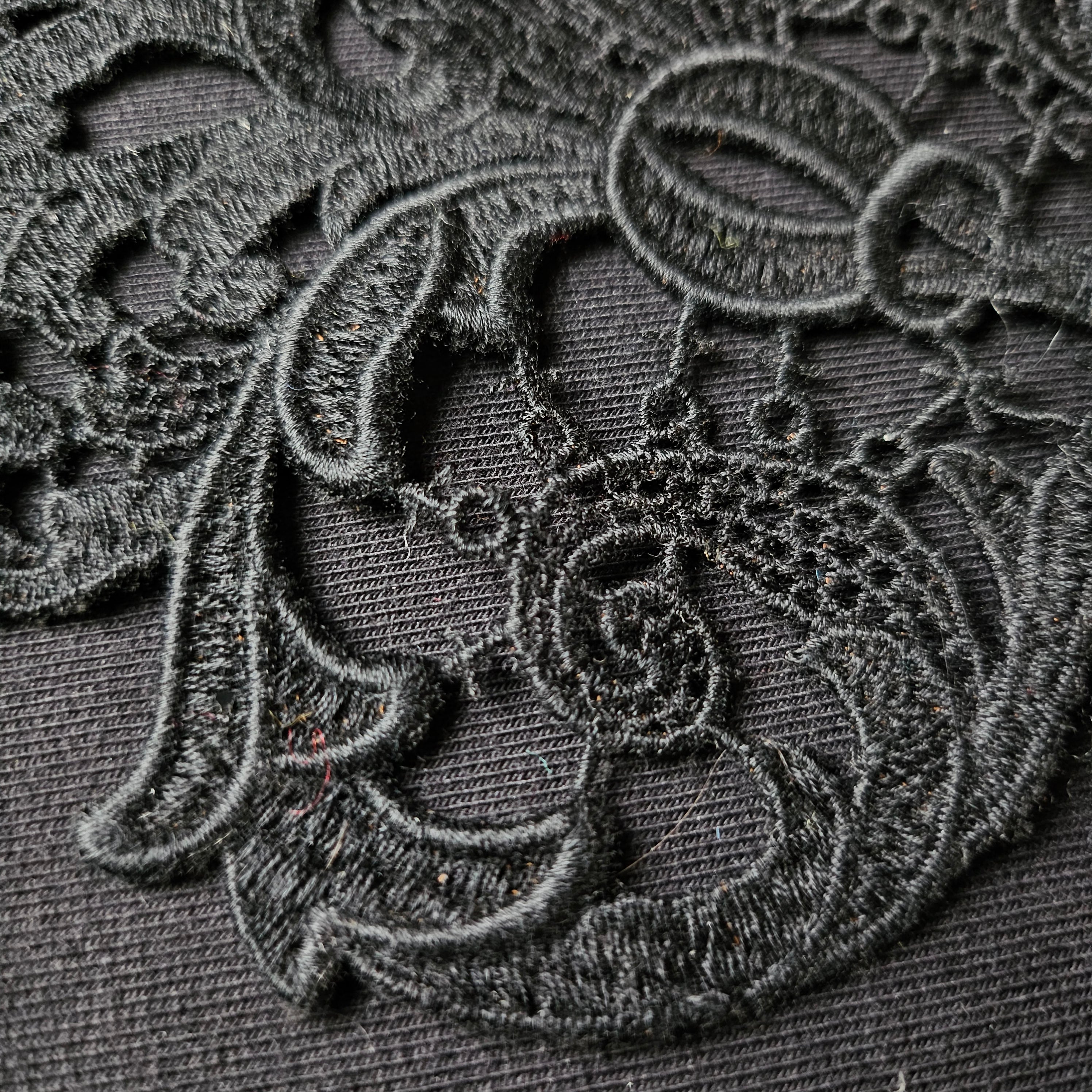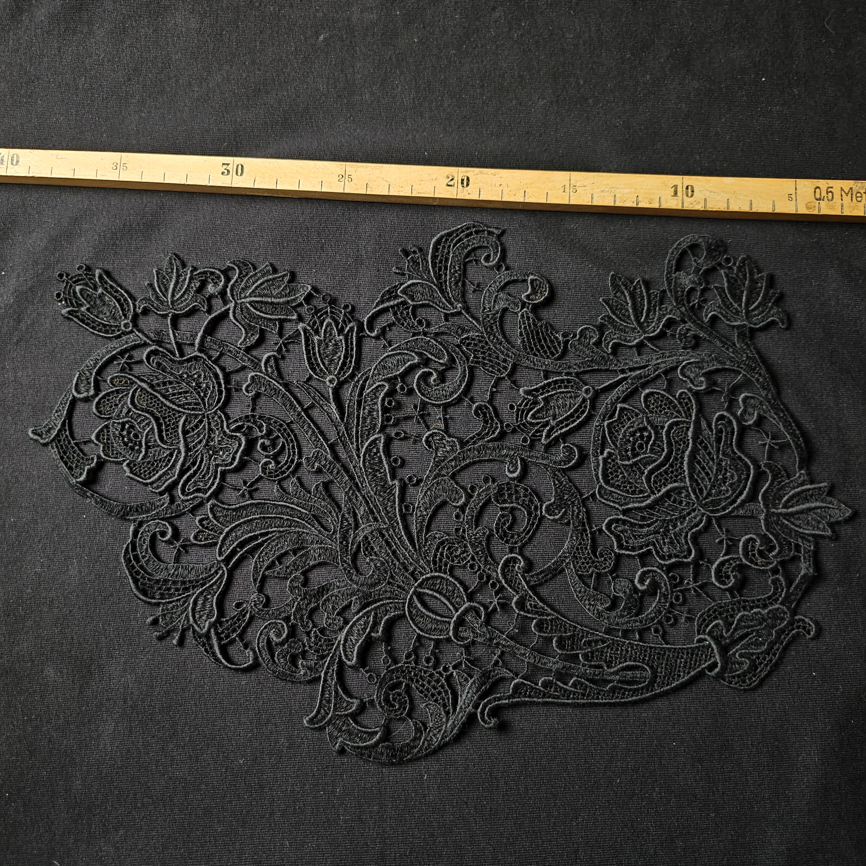 Deadstock Patch – Schwarz, florale Stickerei, DG* (Einzelstück, Maße 24 × 37 cm) (S3X4X028)