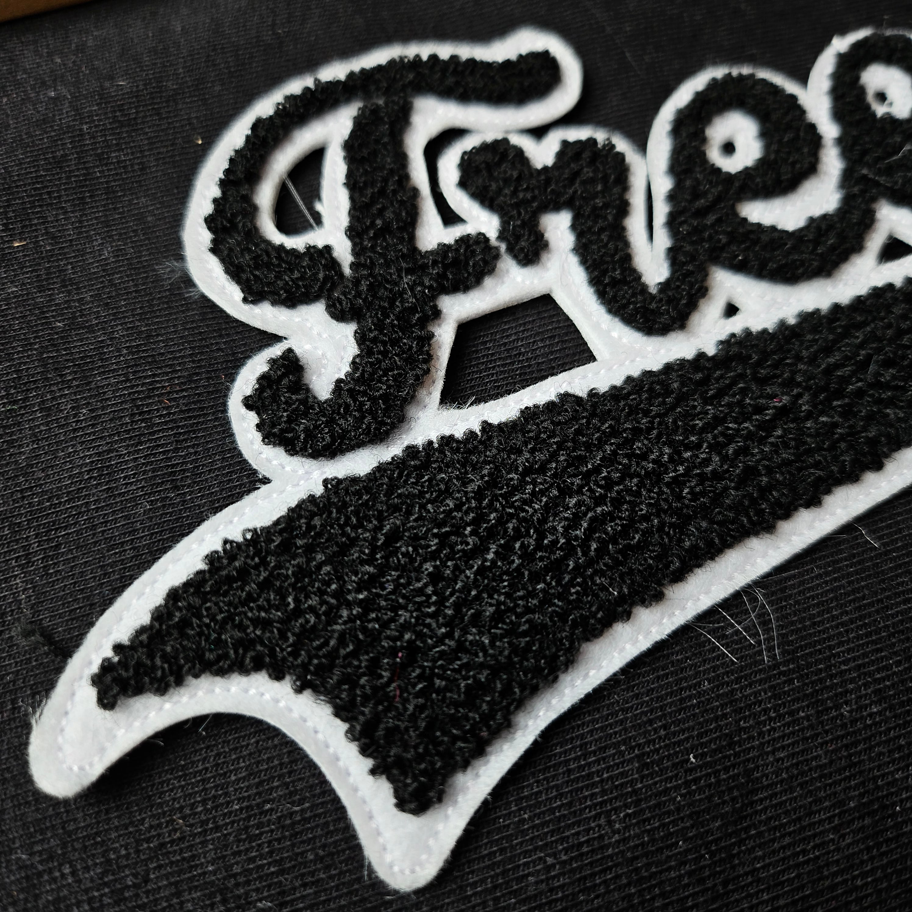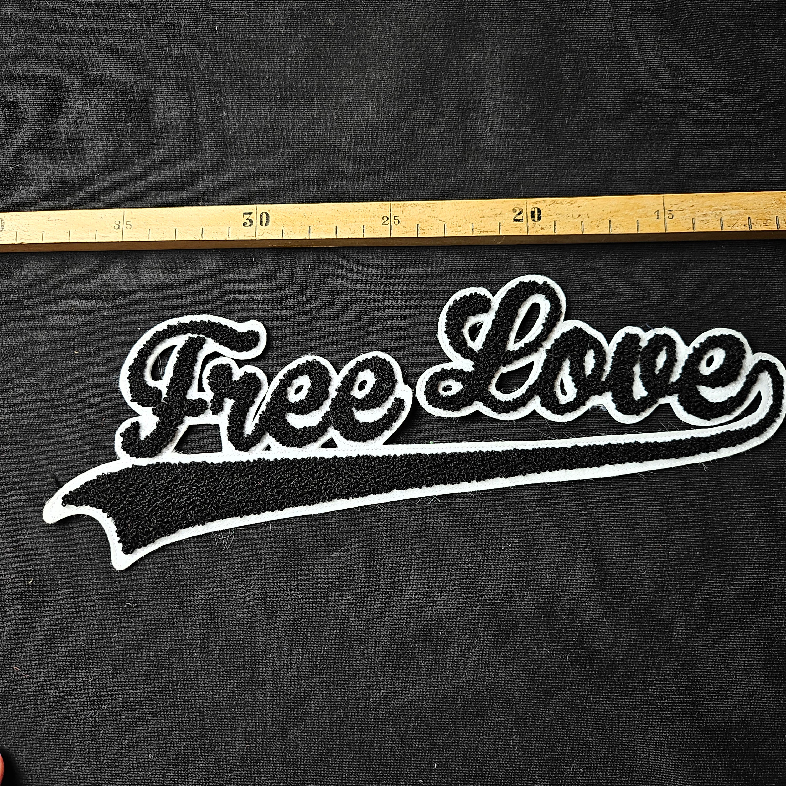 Deadstock bestickter Patch- Free Love, Schwarz-Weiß Kontur, DG* (Einzelstück, Maße 9 × 27 cm) (S3X4X007)