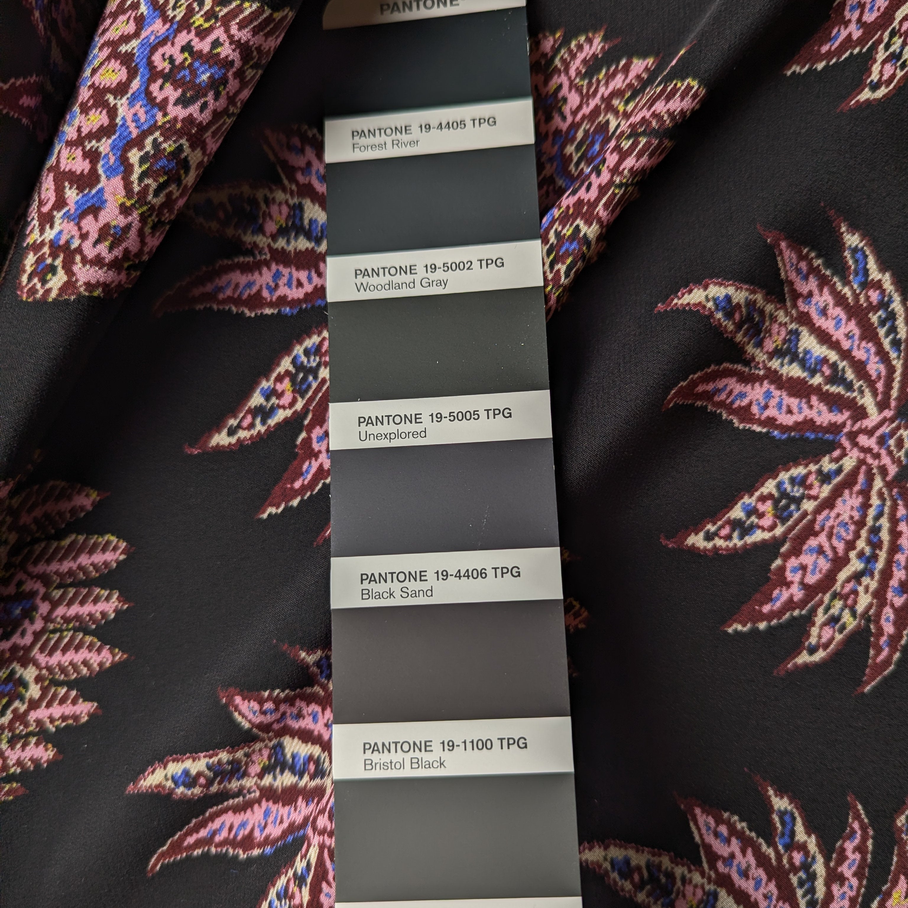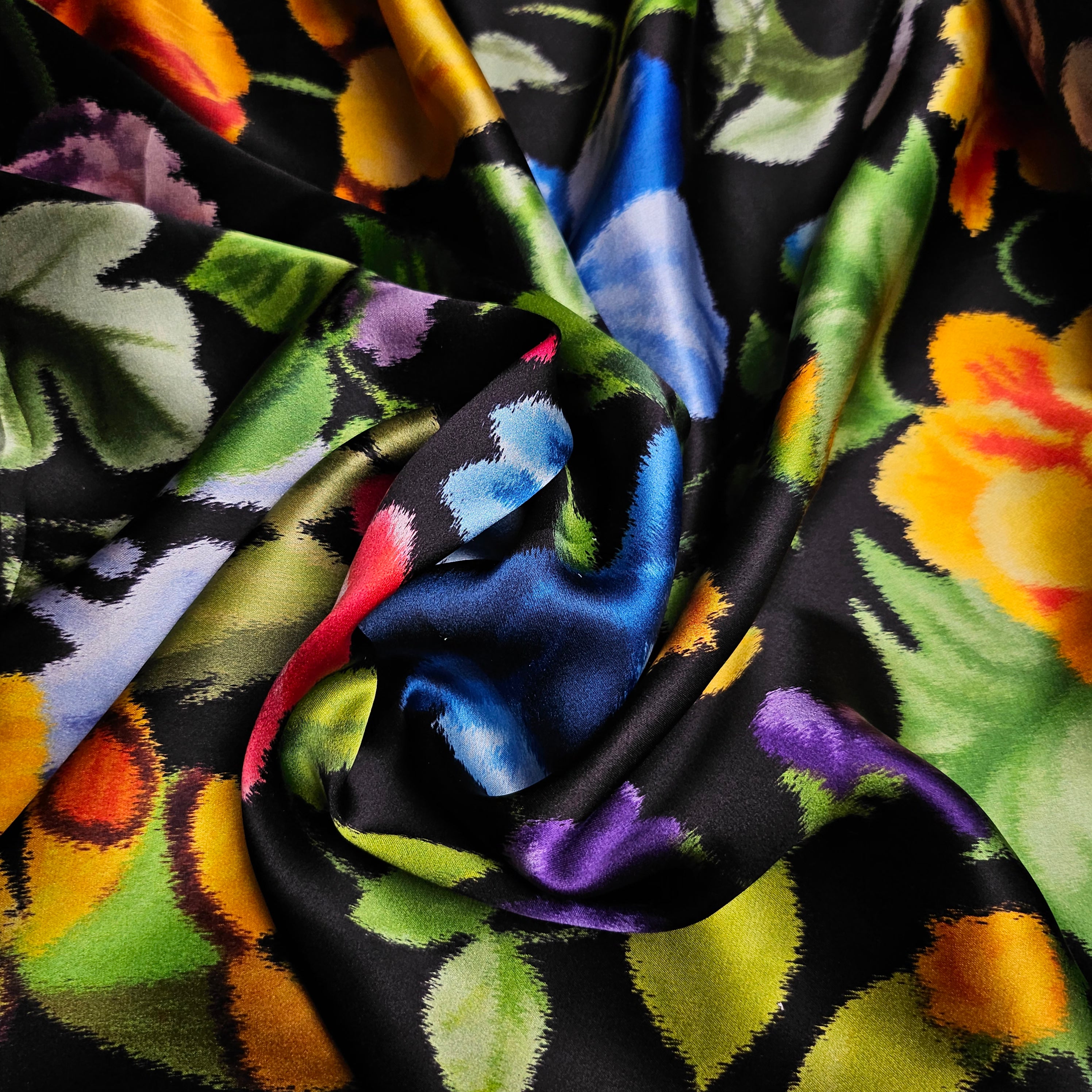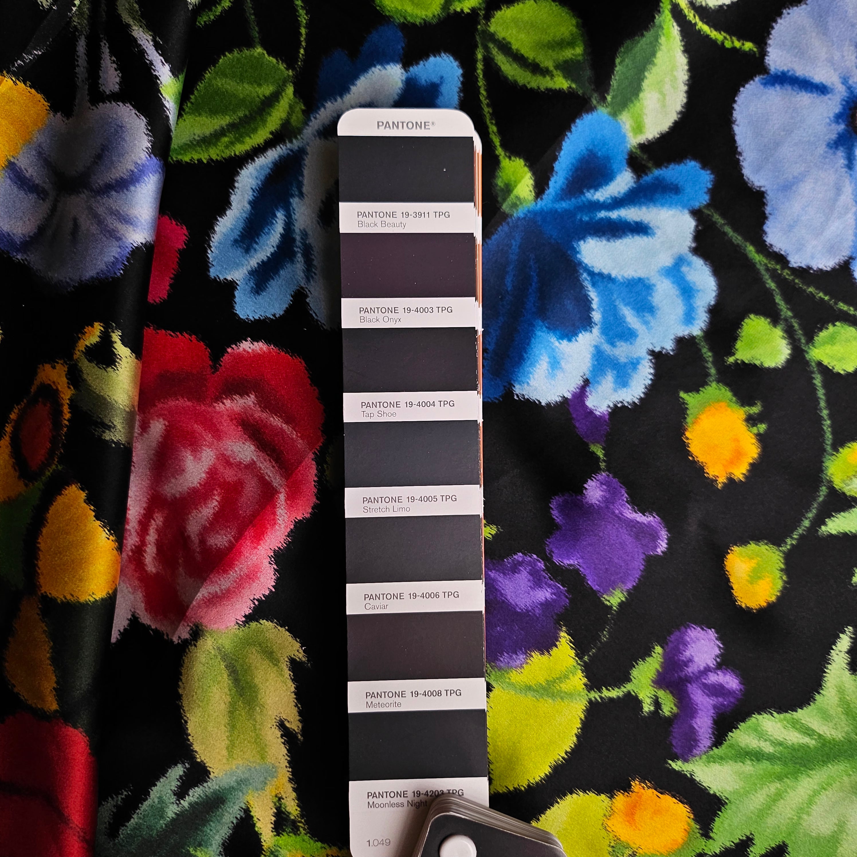 Deadstock Seidensatin geblümt – Pantone-Farbton Moonless Night (Meterware, Stoffbreite 140 cm) (M6X1X29)