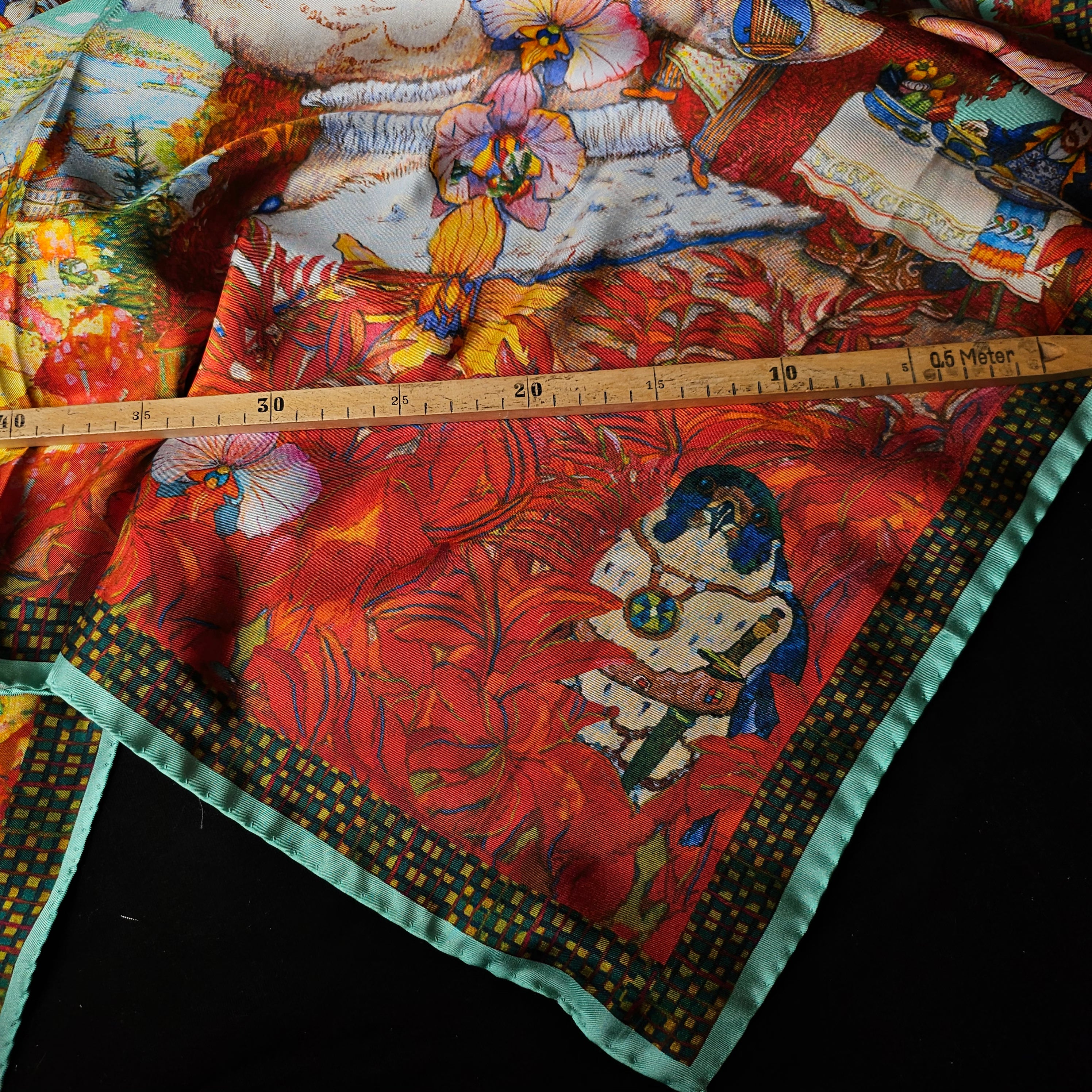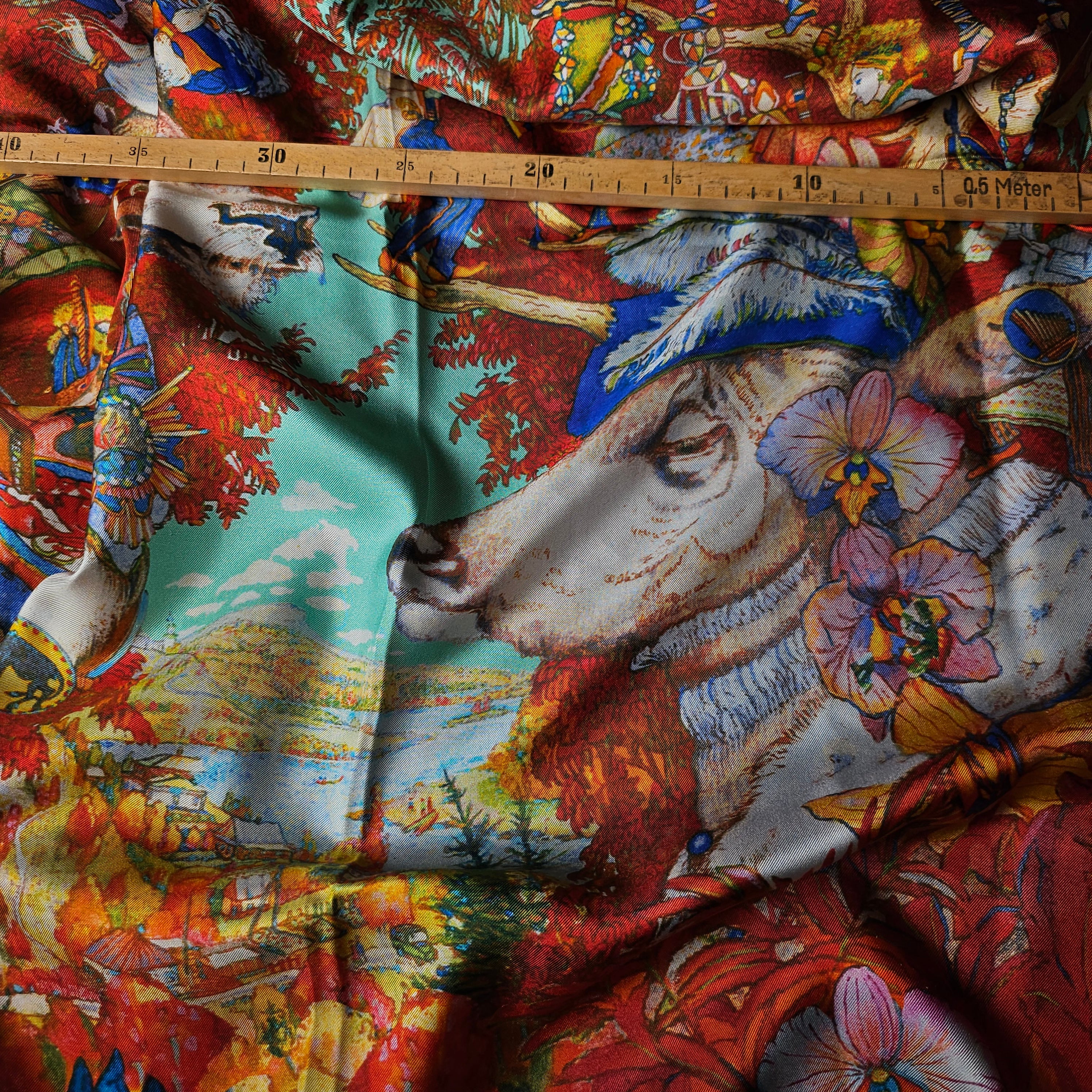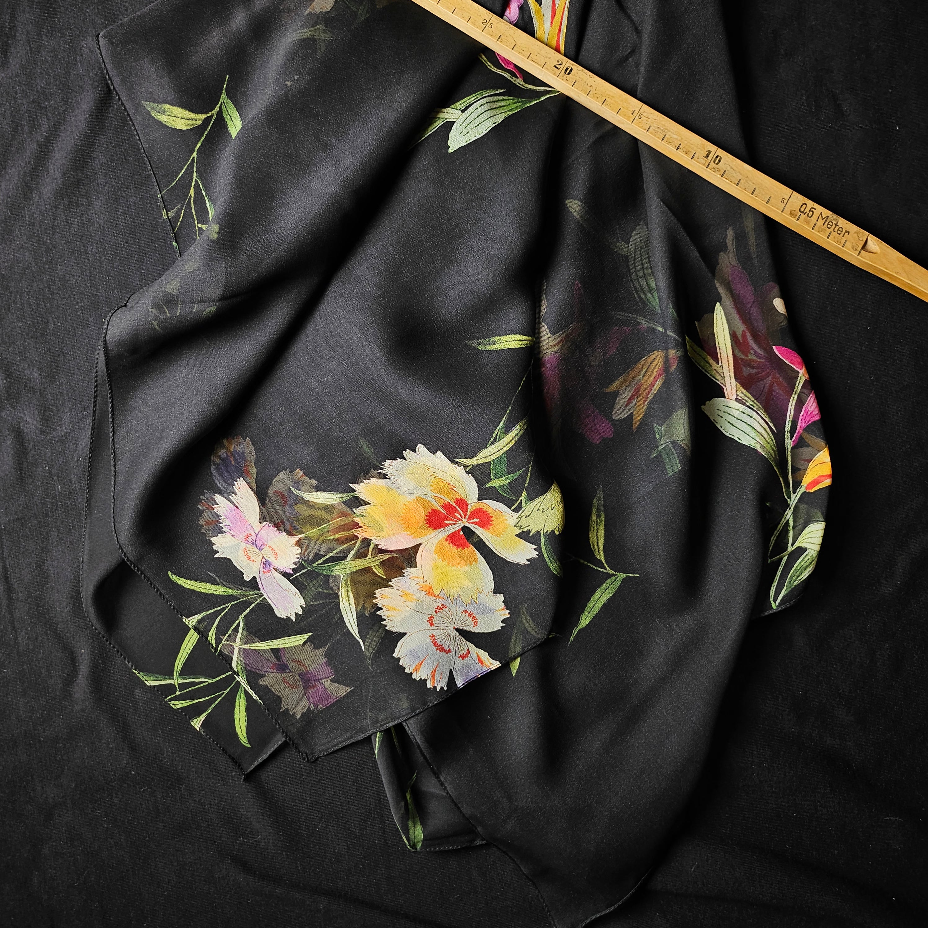 Einzelstück Chiffon Seide Deadstock basisfarbe schwarz mit tropischem Print G*cci 200 cm x 145 cm S5X2X017