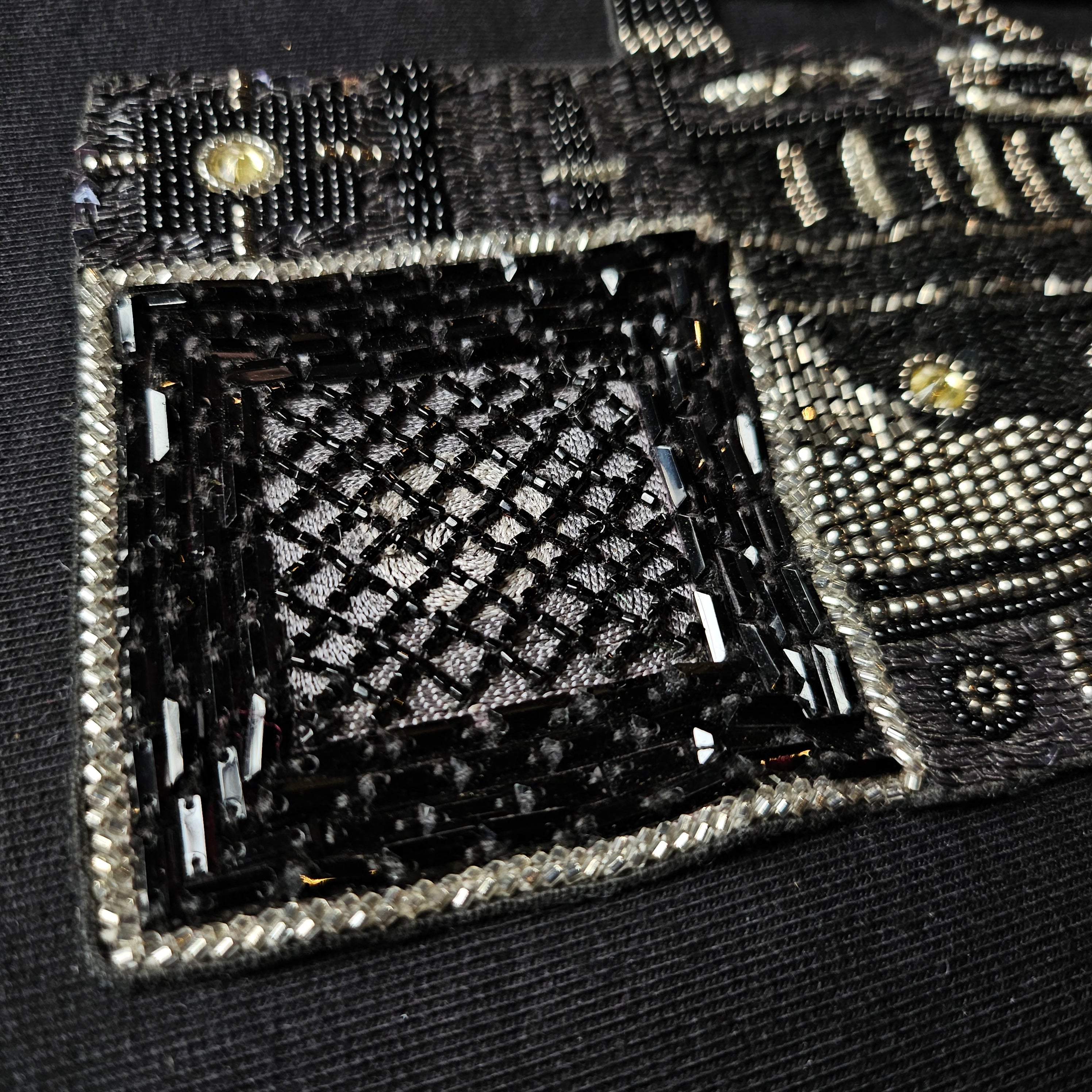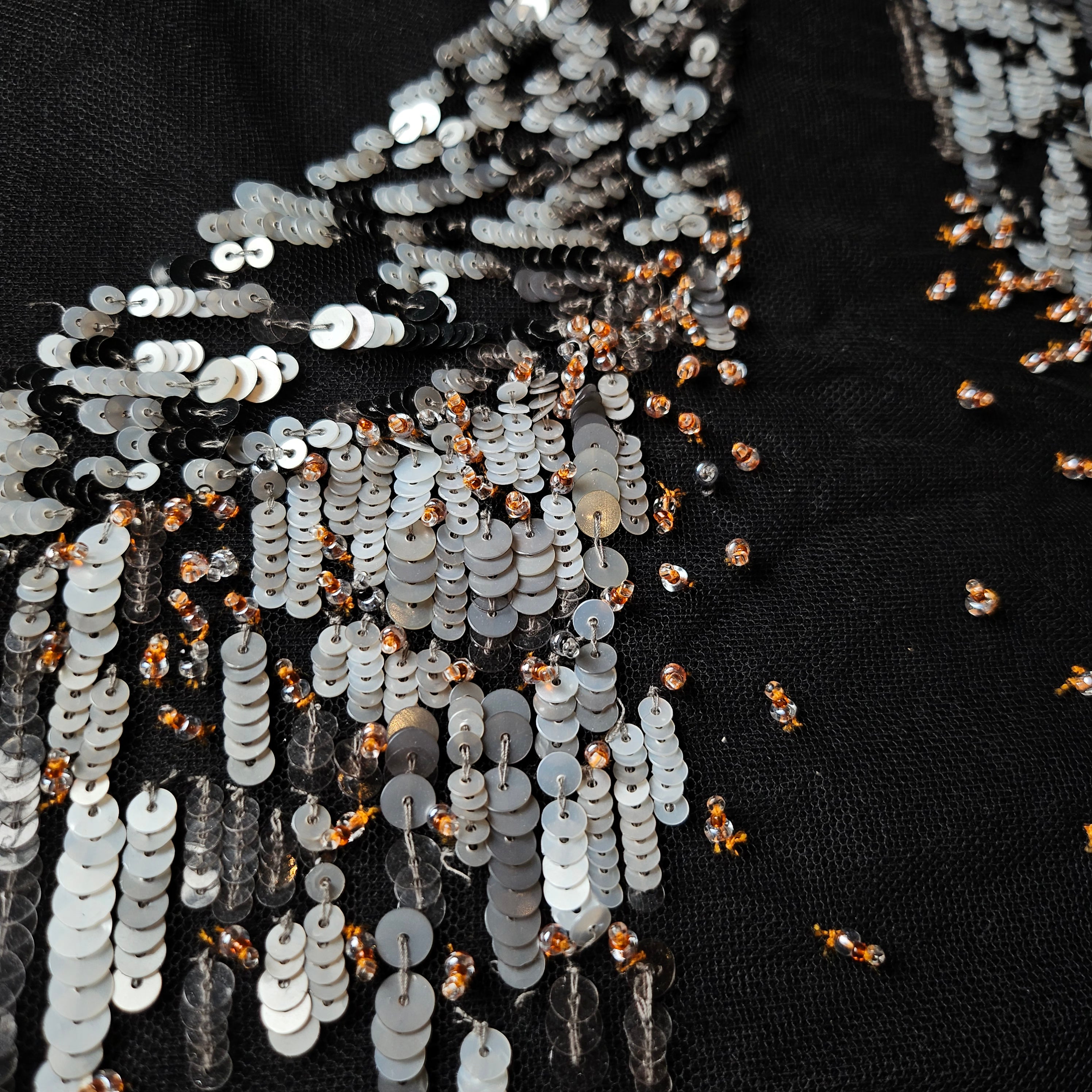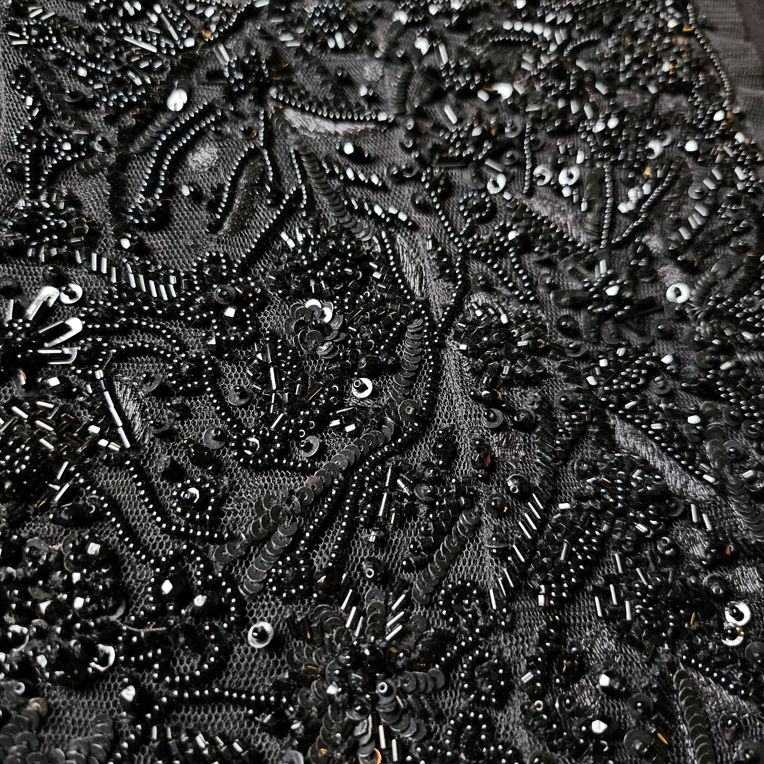 Deadstock Pailletten- und Perlen bestickt, D&G – Schwarz (22 cm × 54 cm, Einzelstück) (S3X6X015)
