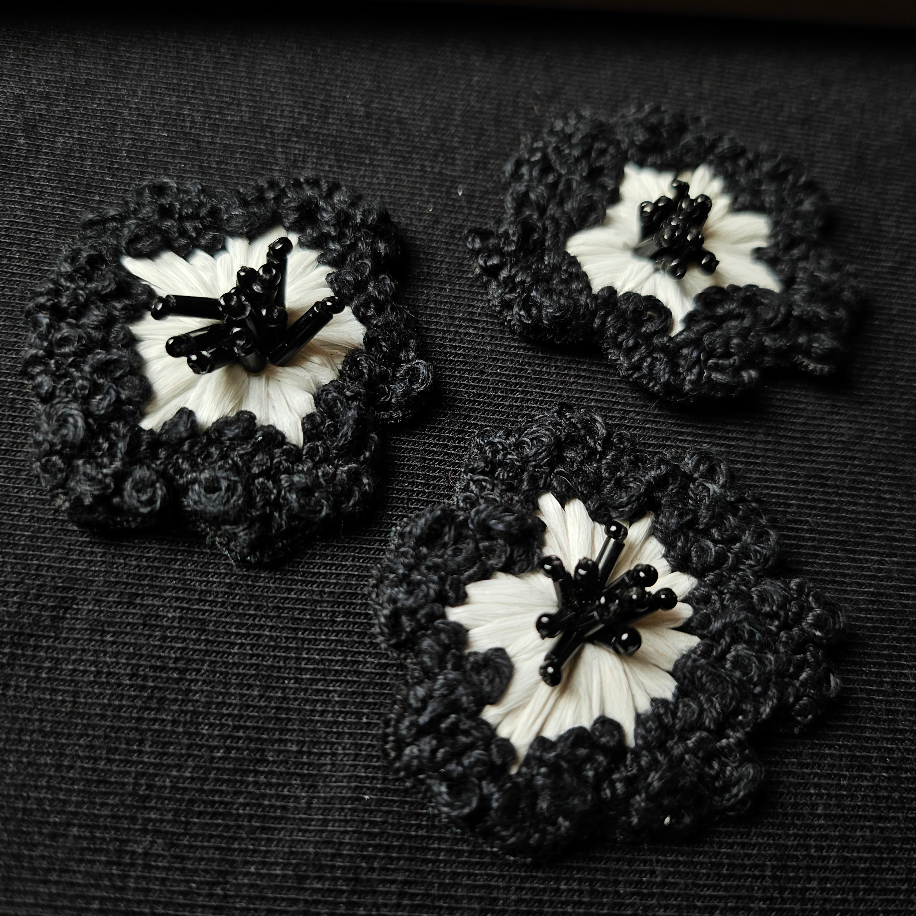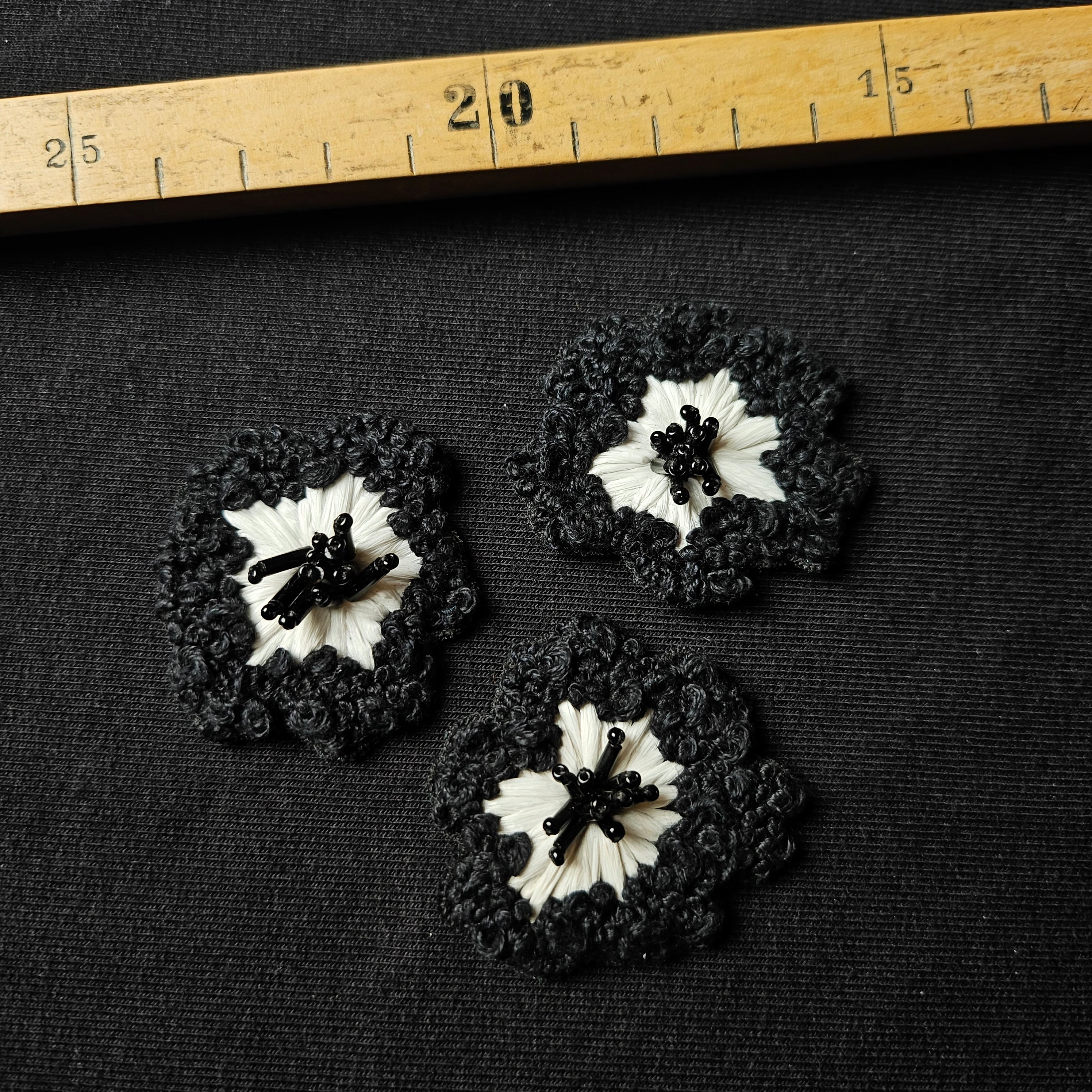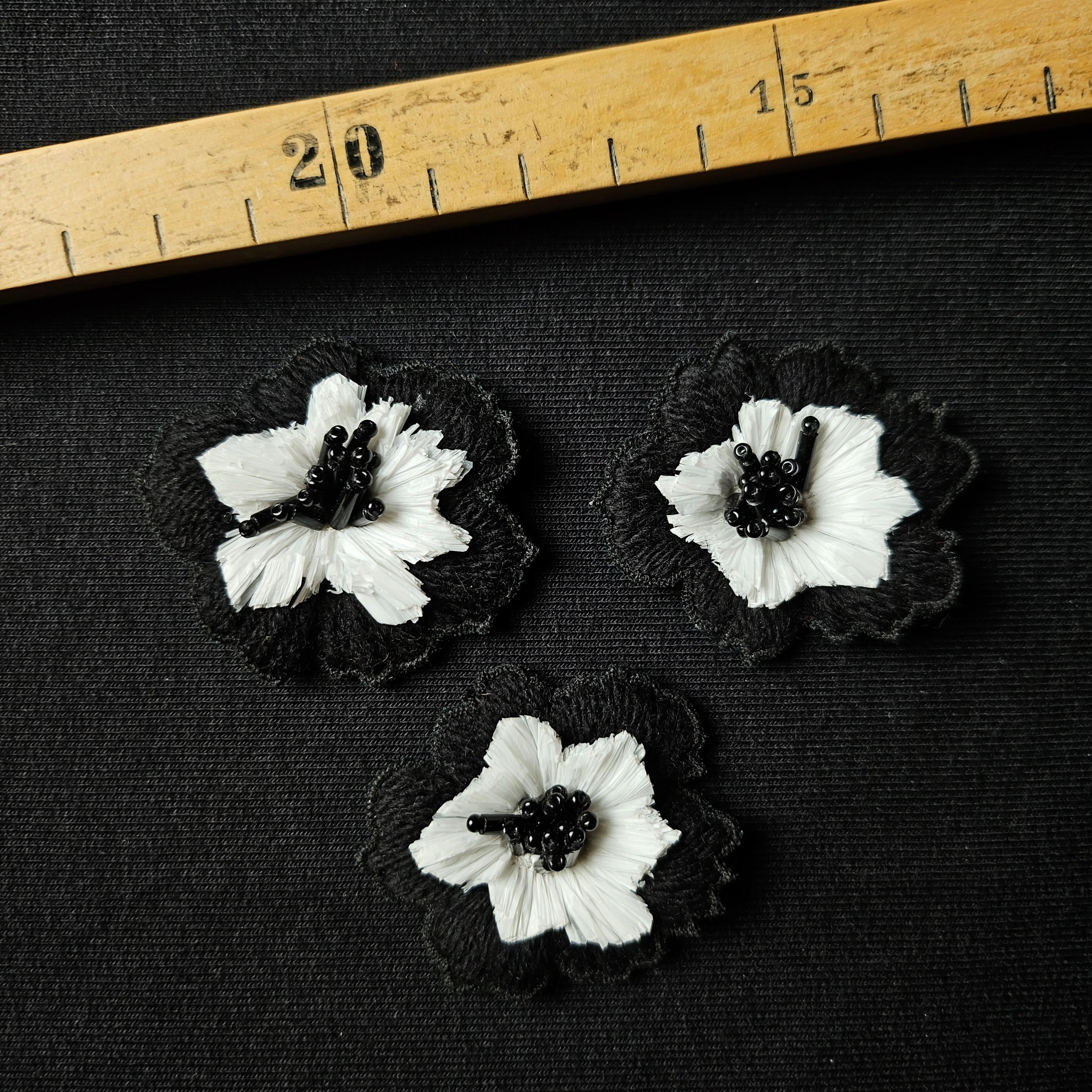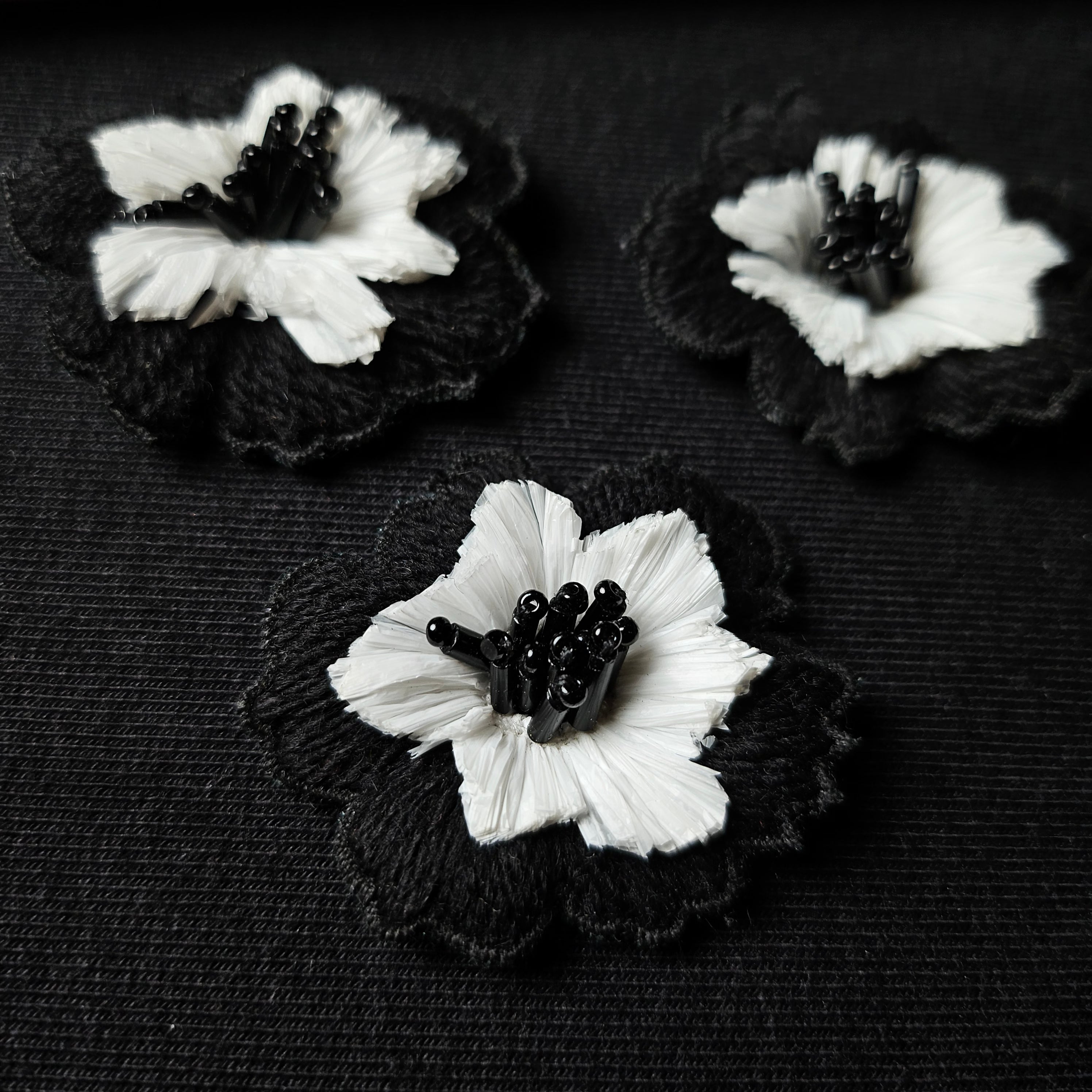 Deadstock Raffia, D&G – Patch/Blume Schwarz-Weiß (4 cm × 4 cm, Einzelstück) (S3X6X036)