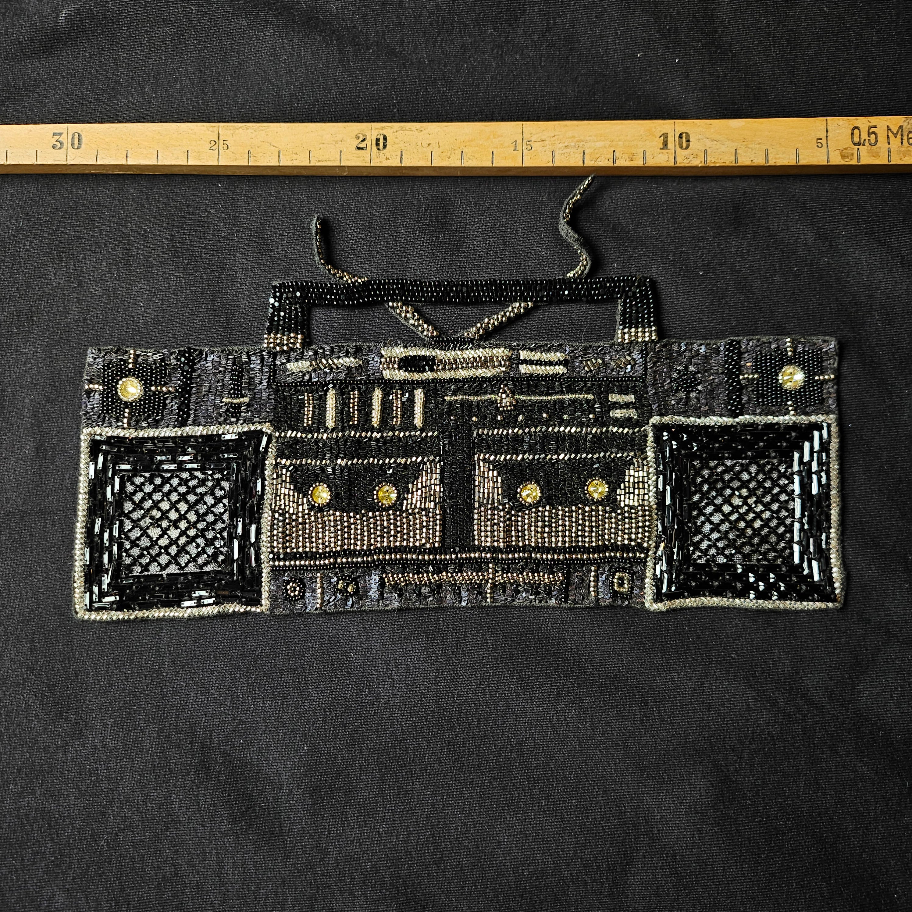 Deadstock Patch Beads Pailletten Steine Kasettenrekorder Schwarz Silber GoldDG*(Einzelstück, Maße 14 × 25 cm)(S3X5X010)