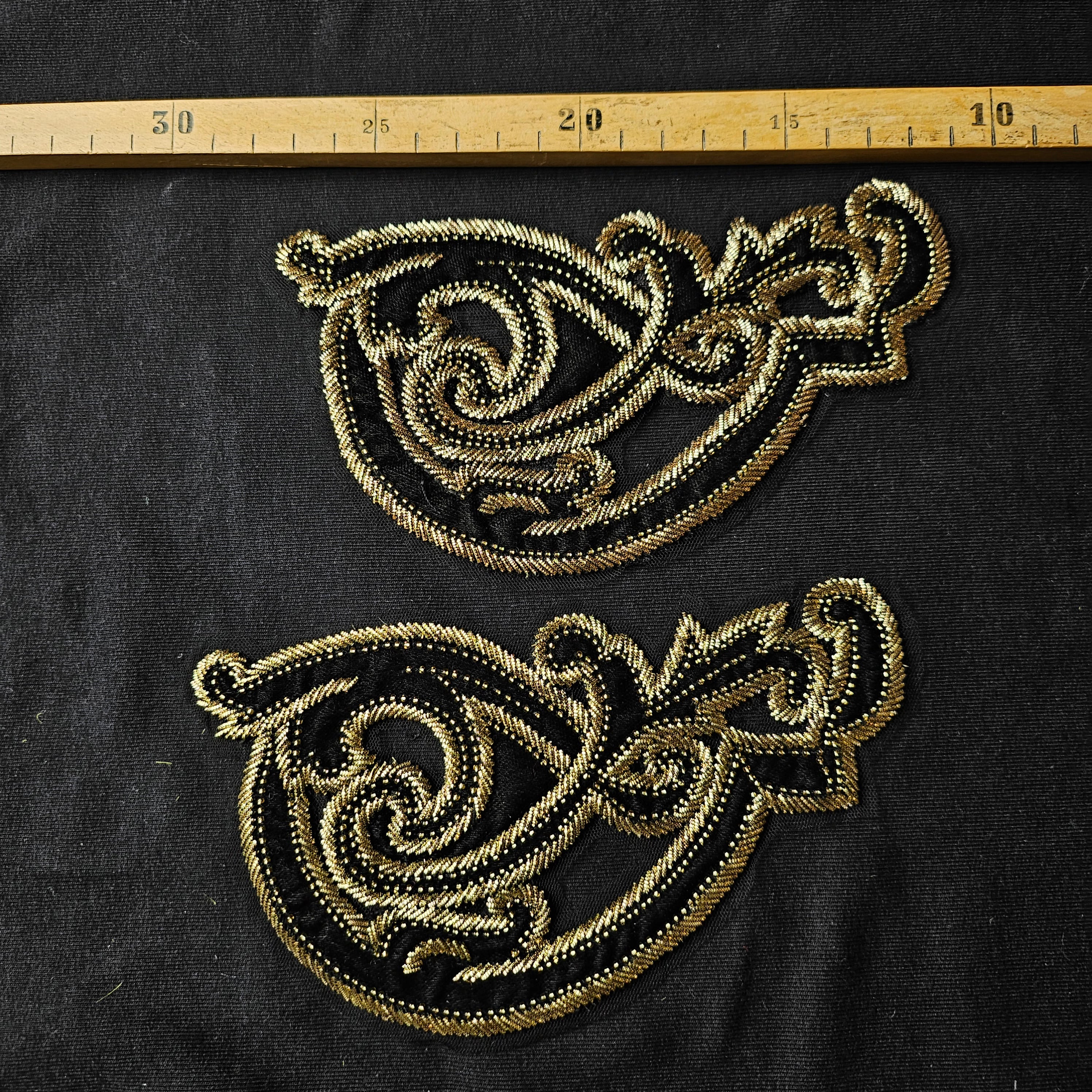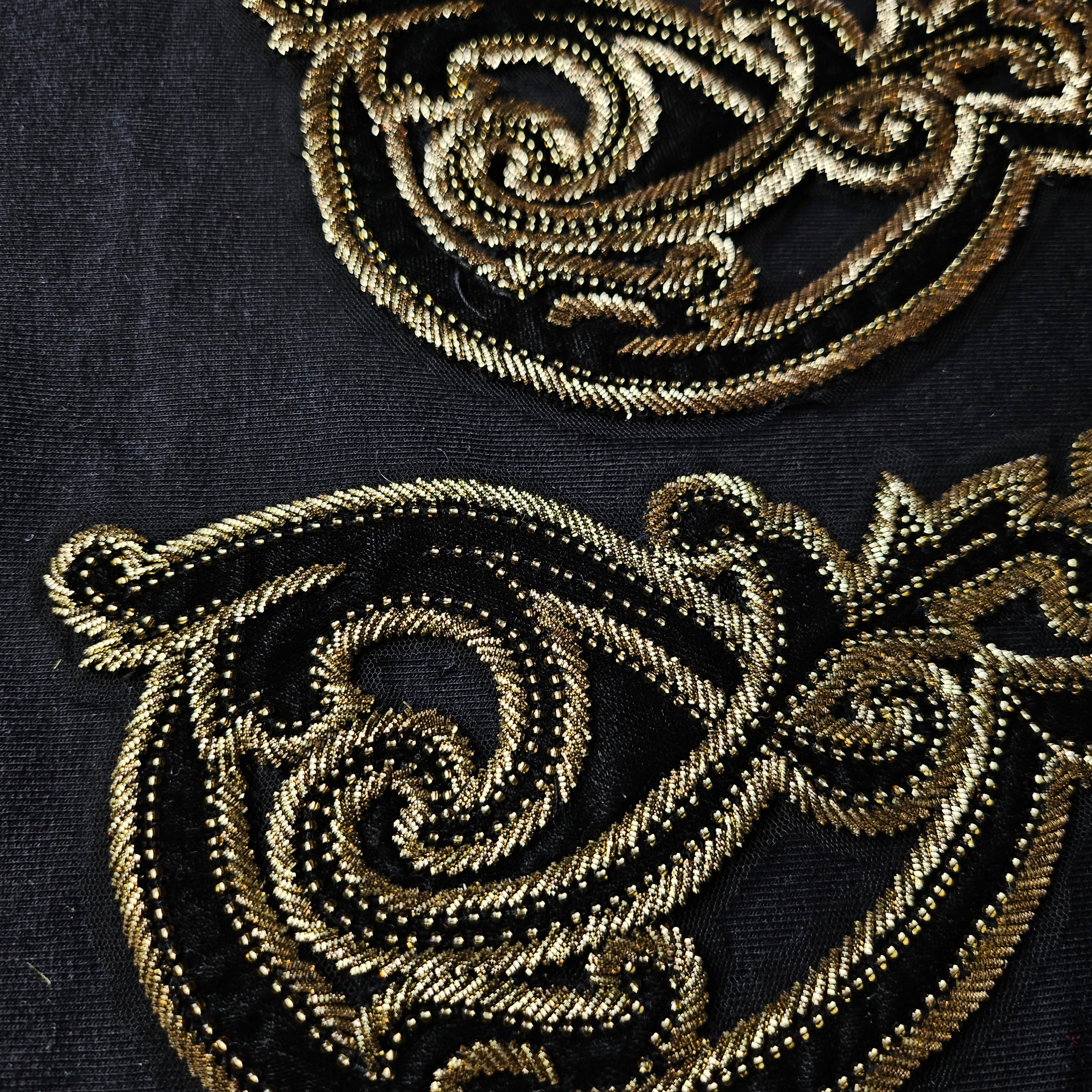 Deadstock Samtapplikation, D*G – Schwarz mit Goldstickerei (11 × 19 cm, Einzelstück) (S3X3X024)