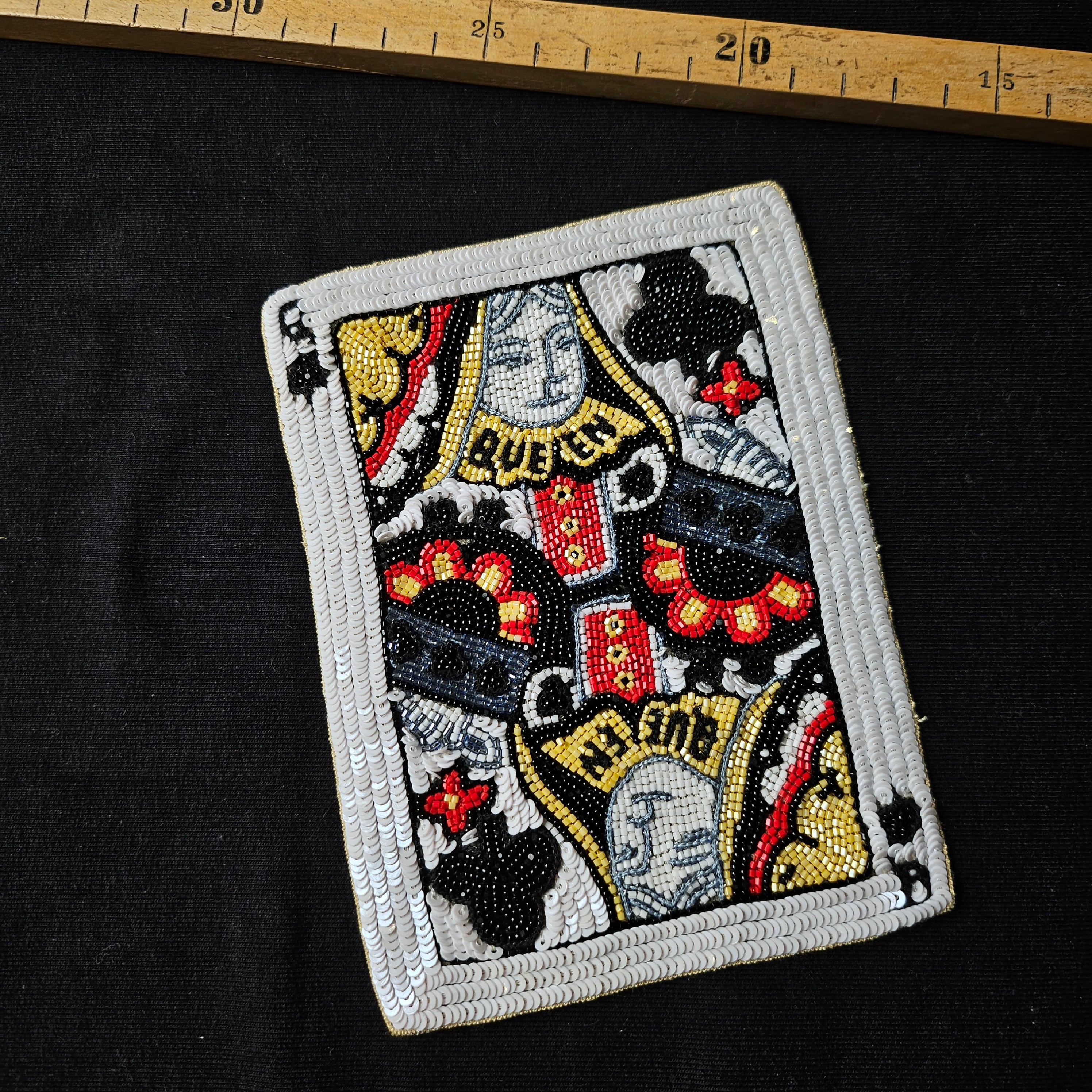 Deadstock Patch Mit Pailletten- und Perlenstickerei – Spielkarte Queen, DG* (Einzelstück, Maße 10 × 14 cm) (S3X5X009)