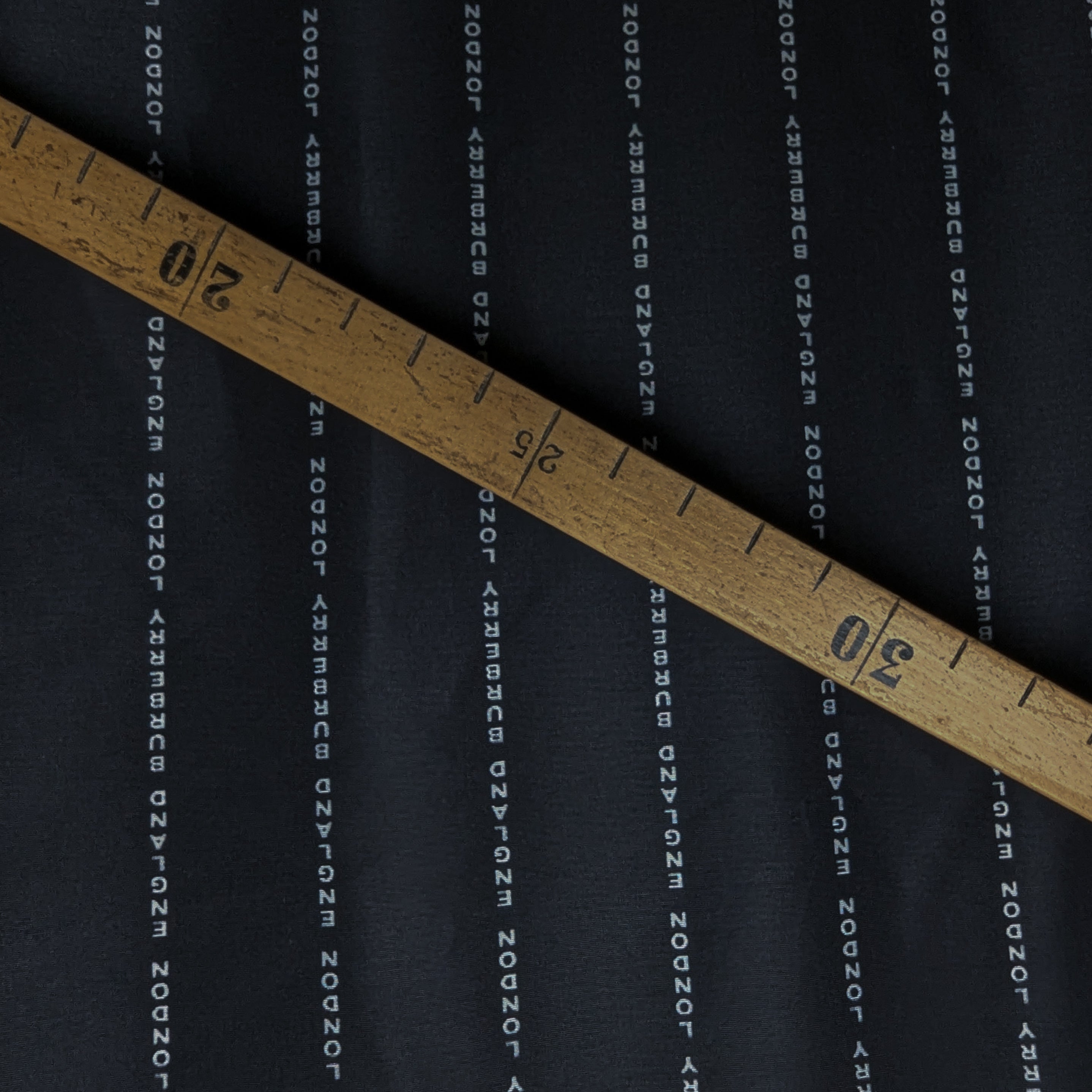 Deadstock Meterware Polyesterstoff – Schwarz mit Weißem Logo, B*rberry (Stoffbreite 150 cm) (M1X4X6)