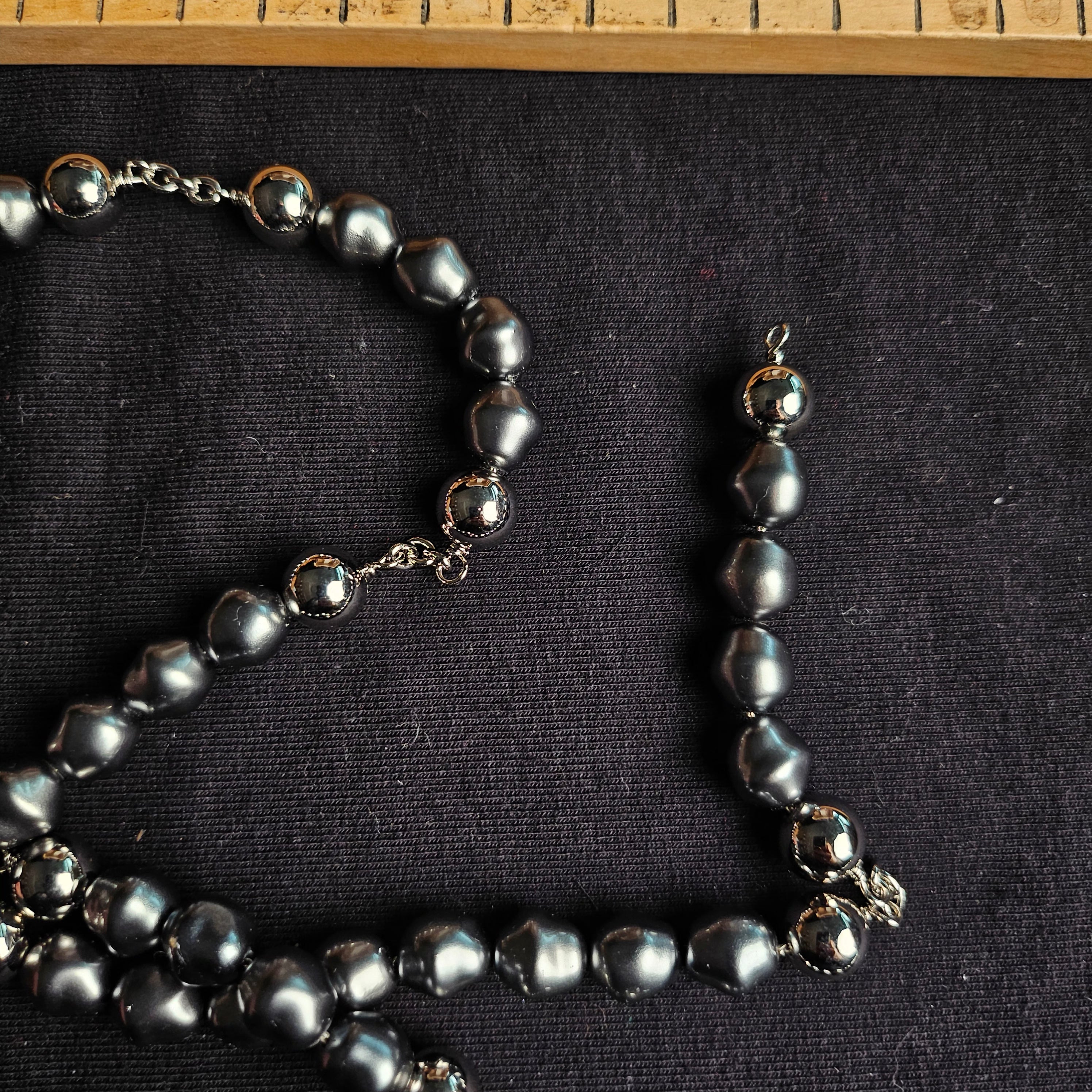 Perlenkette Silber V*rsace Grau 1 cm Perlen 82 cm (S2X1X043)