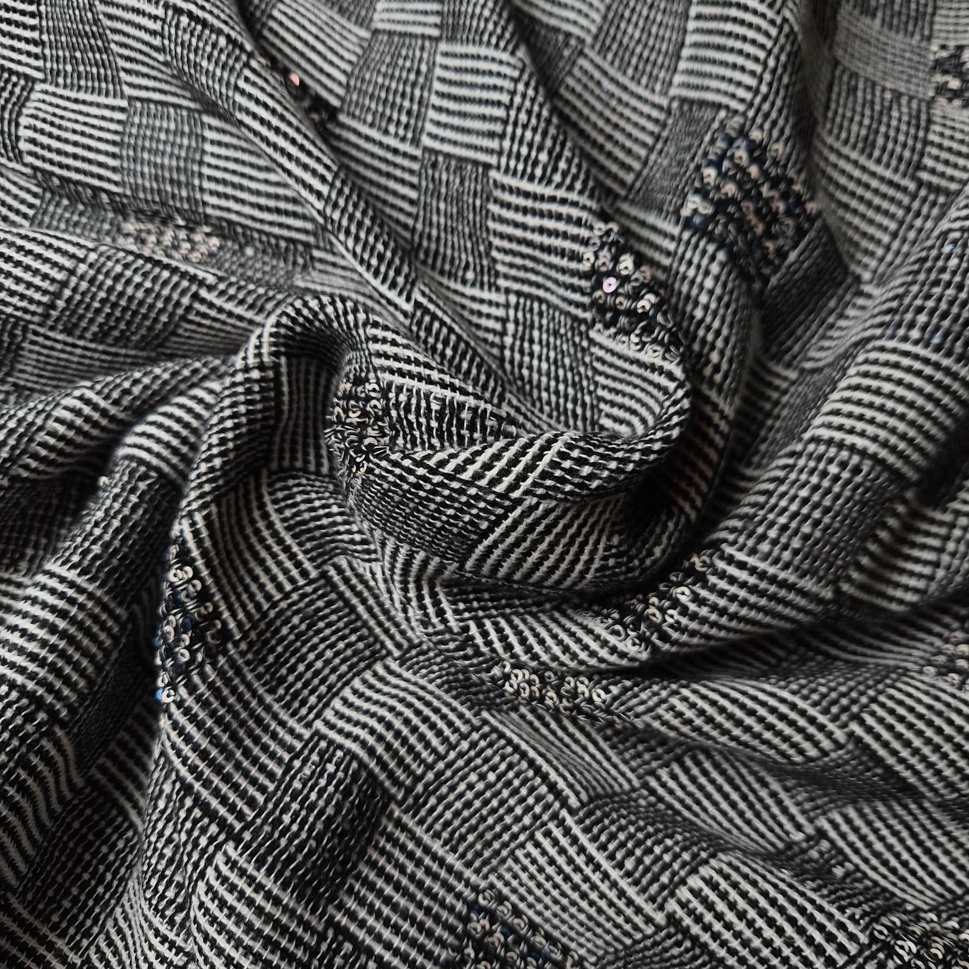 Tweed, Kariert, Pailetten · 160×160 cm