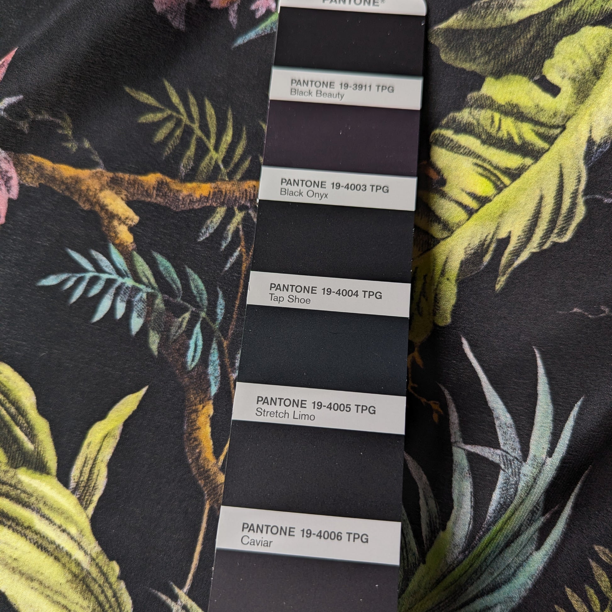 Seide, Chiffon, Schwarz Tropenprint · 200×145 cm