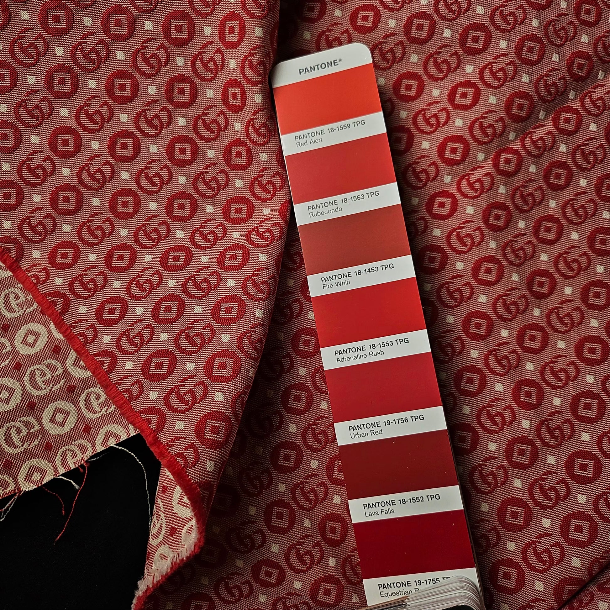 Baumwolldenim, Jacquard, Pantone Urban Red, Logo · 100×25 cm